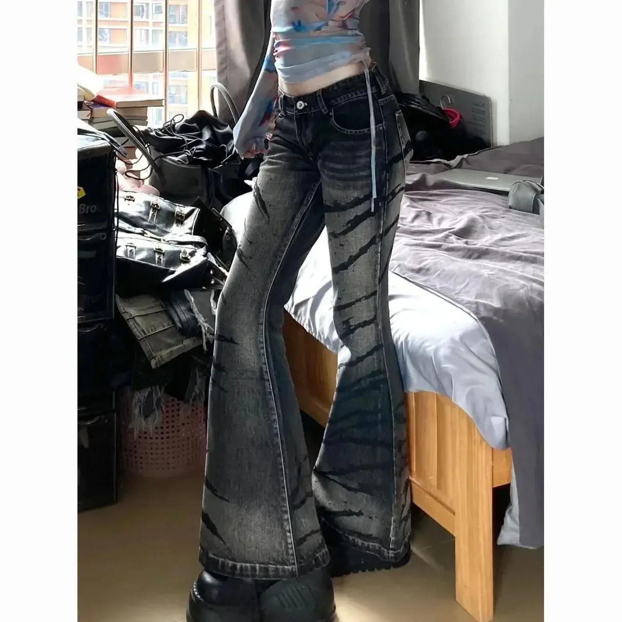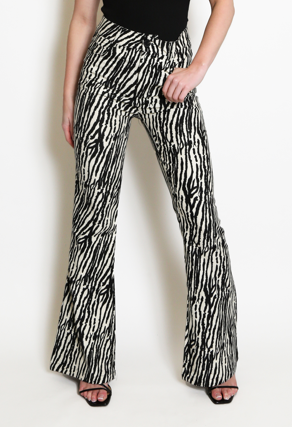 zebra flared jeans