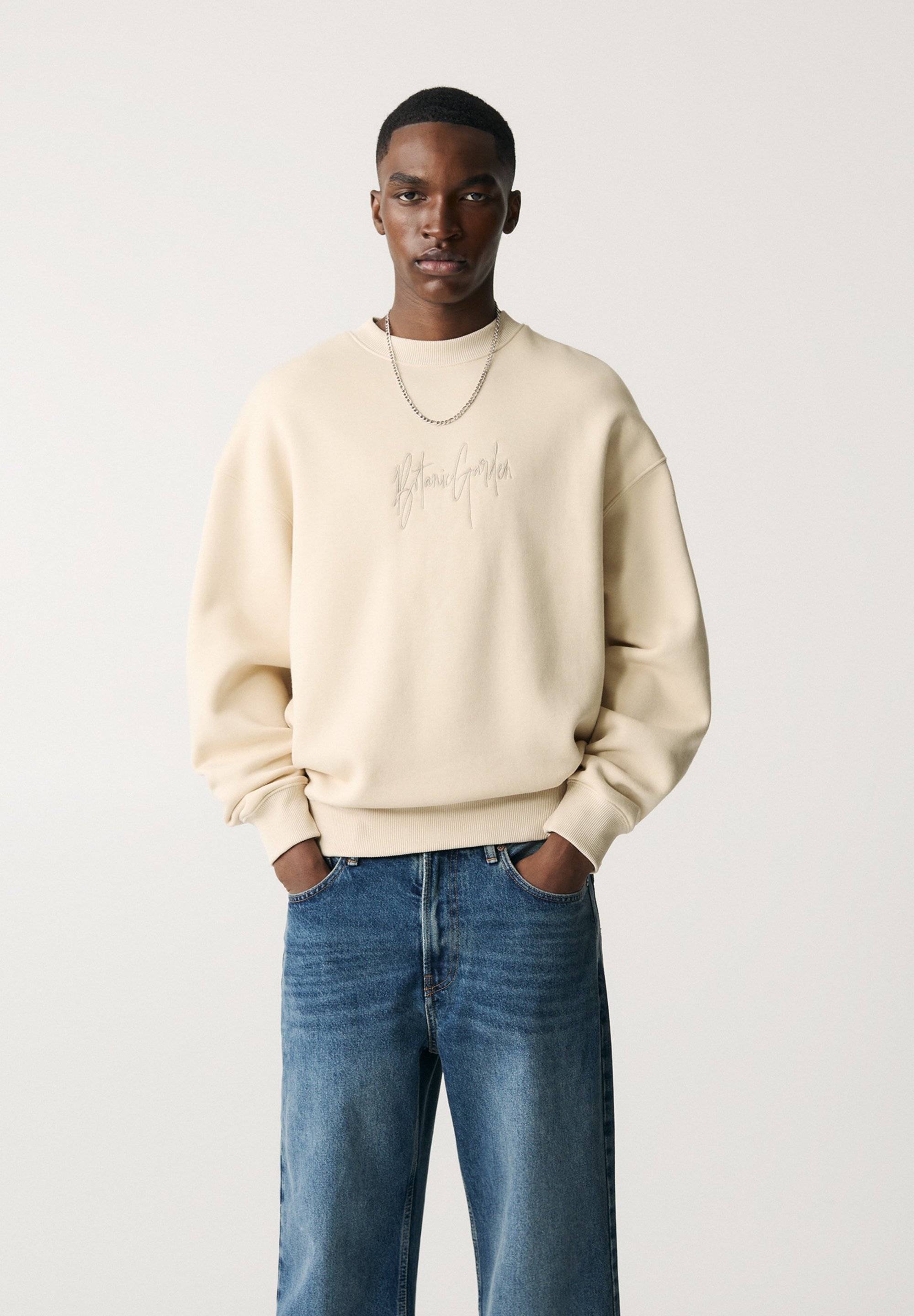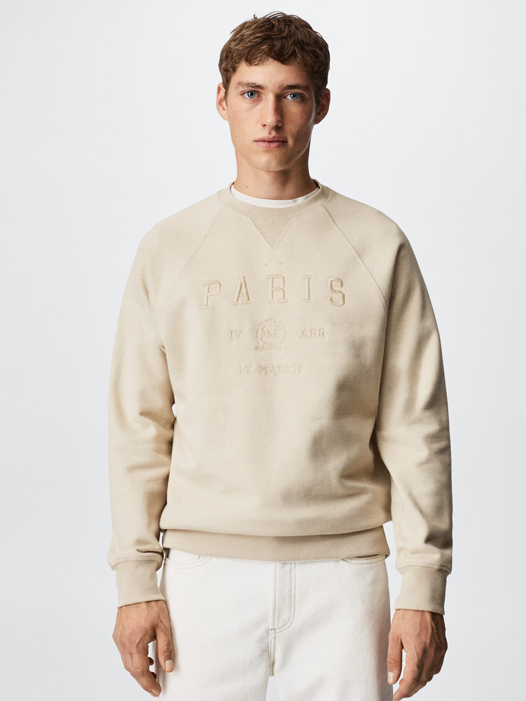 beige embroidered sweatshirt