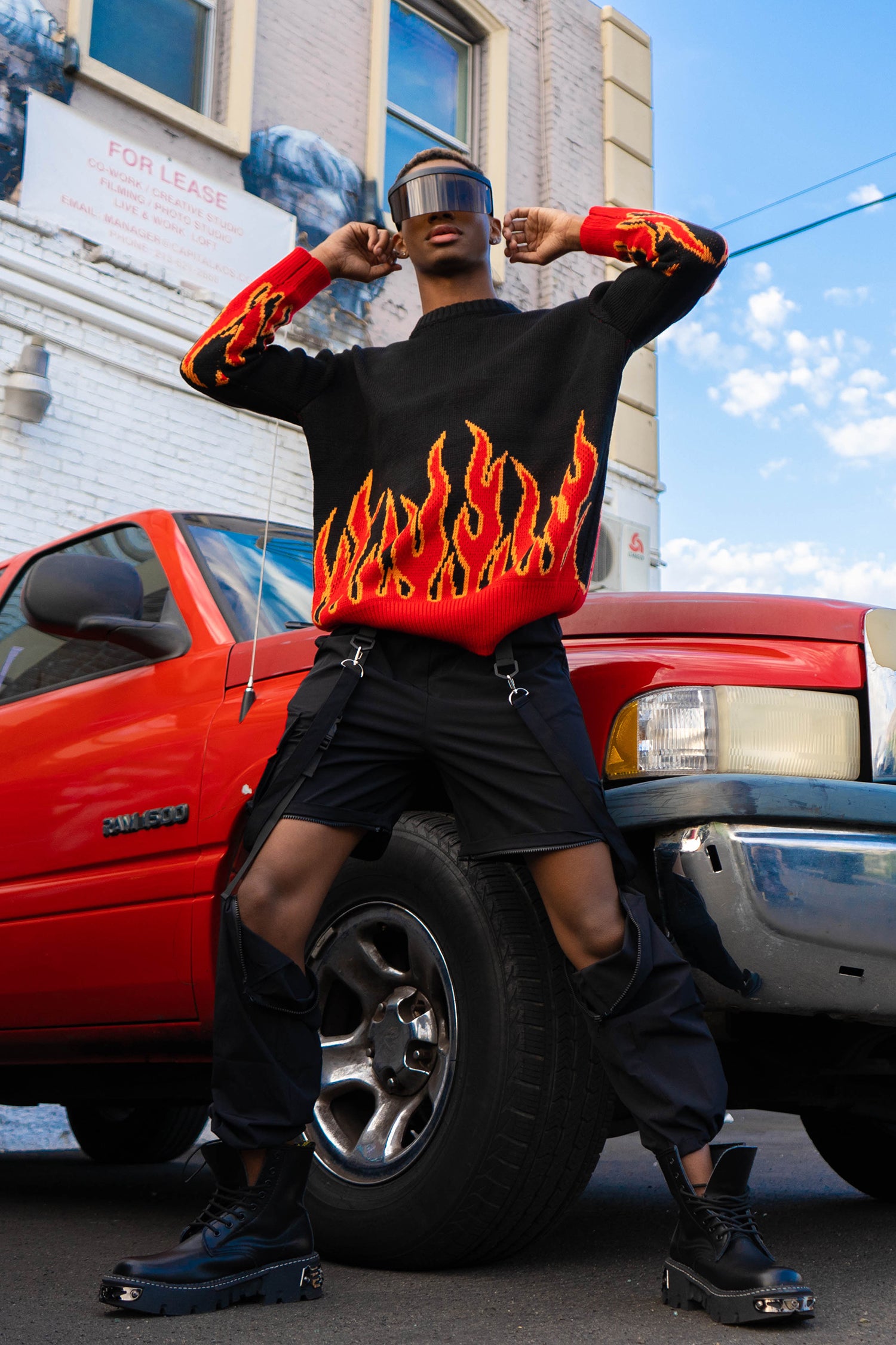 black and red flame sweater