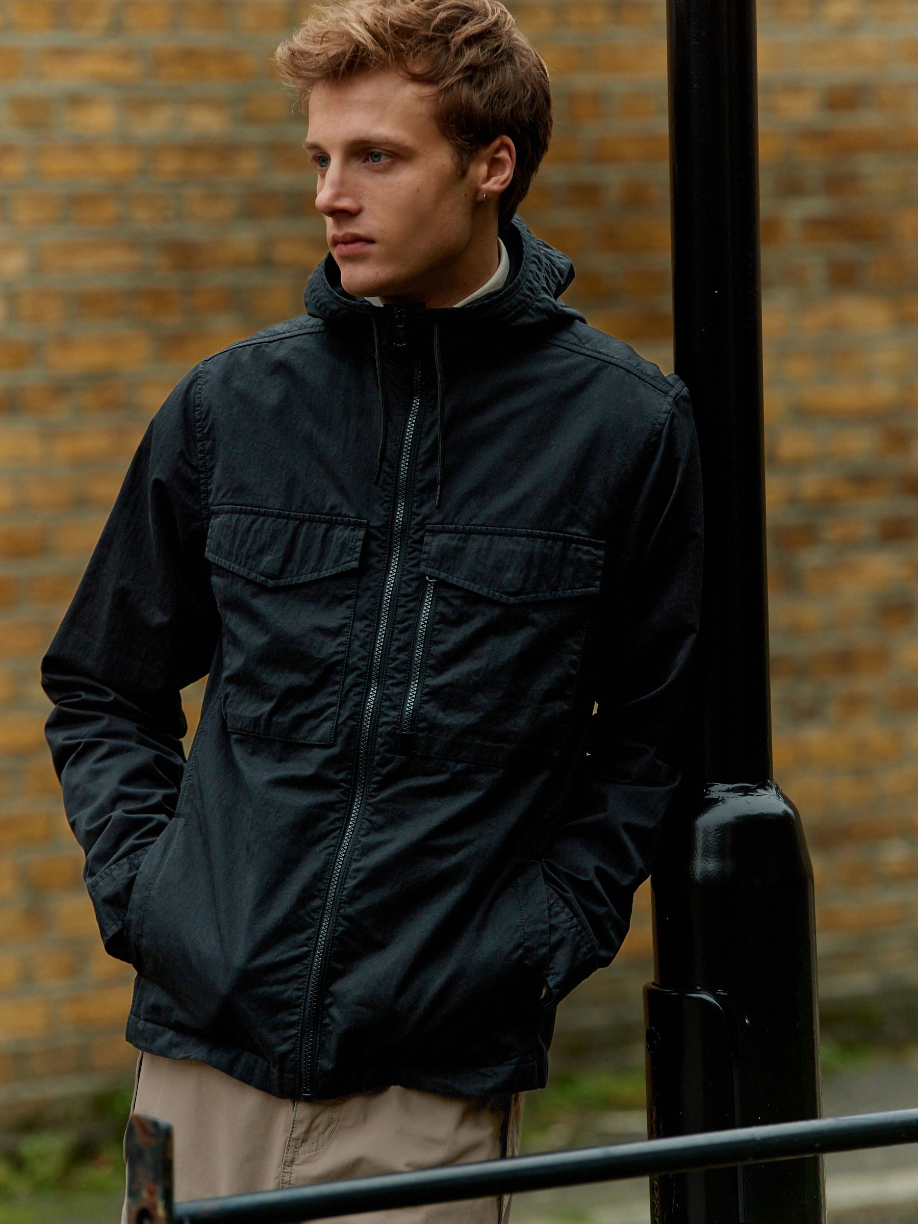 black hooded utility jacket