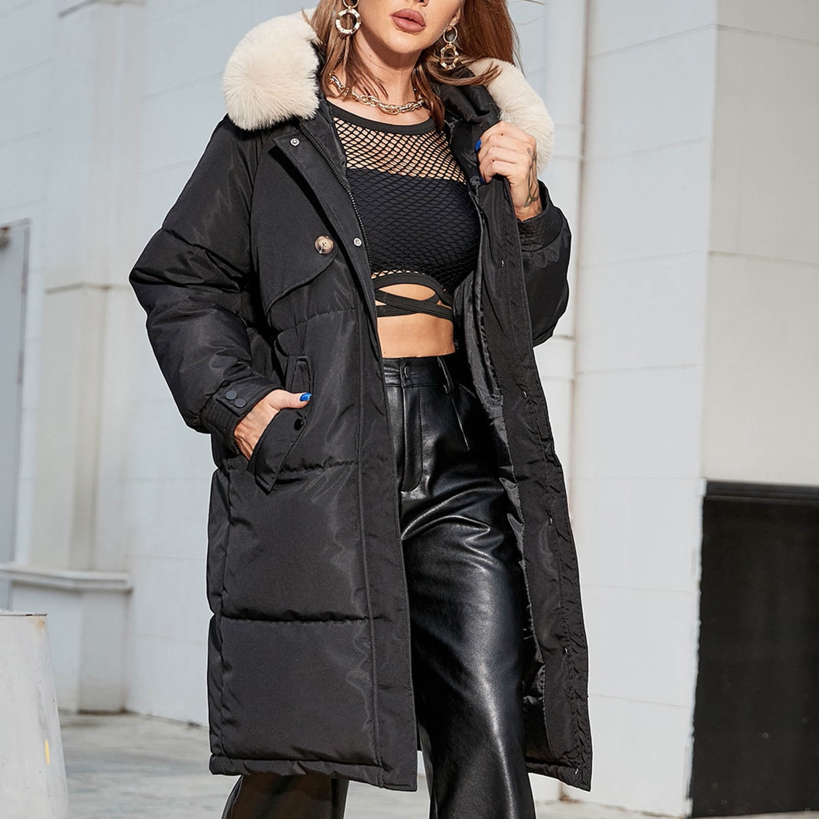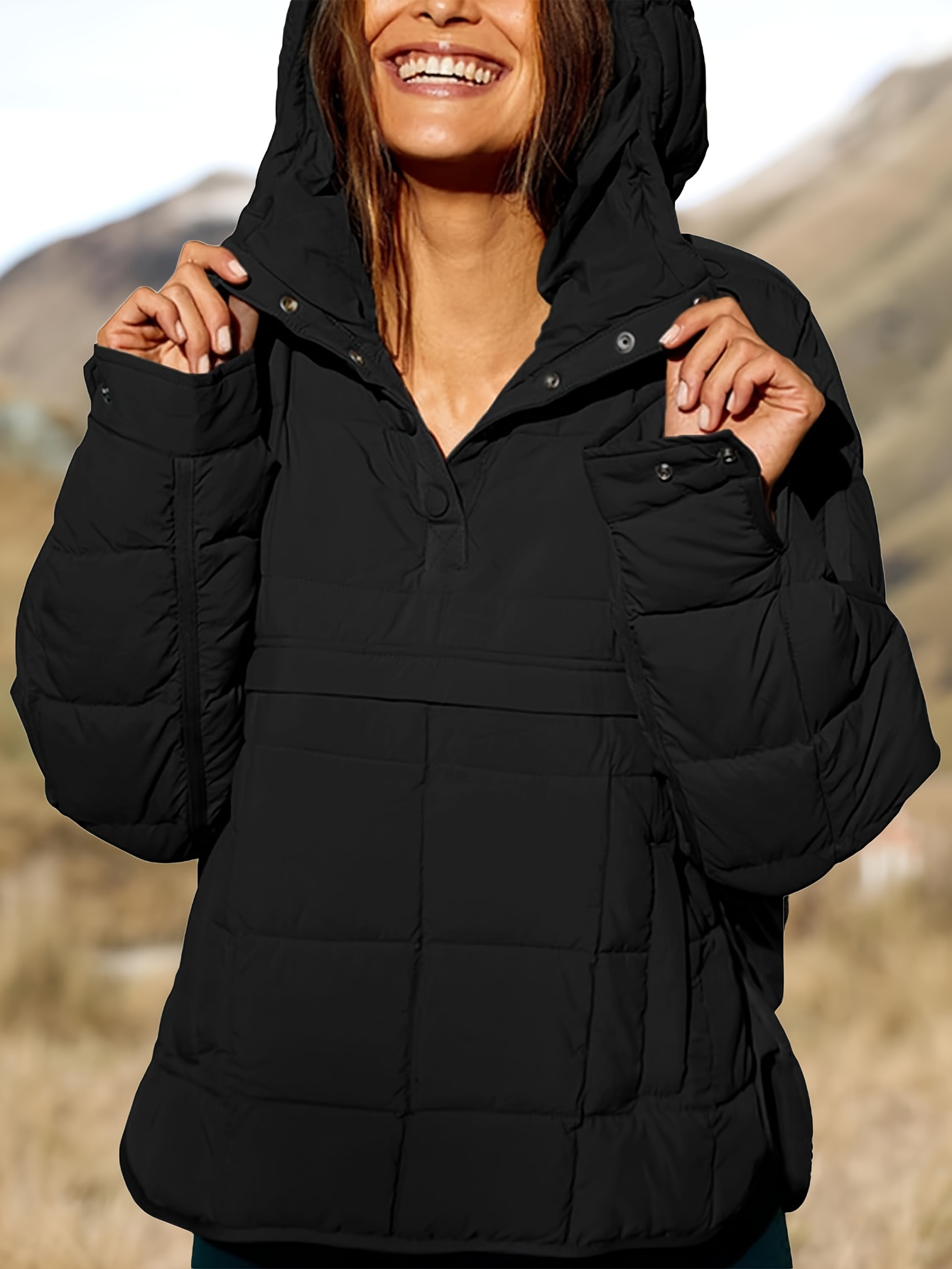 black oversized puffer jacket with hood