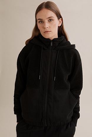 black teddy zip up jacket