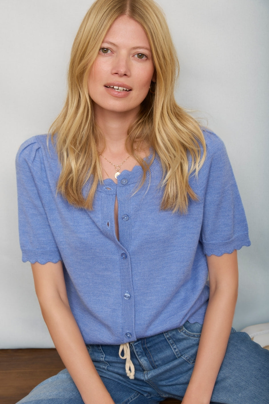 blue button down sweater