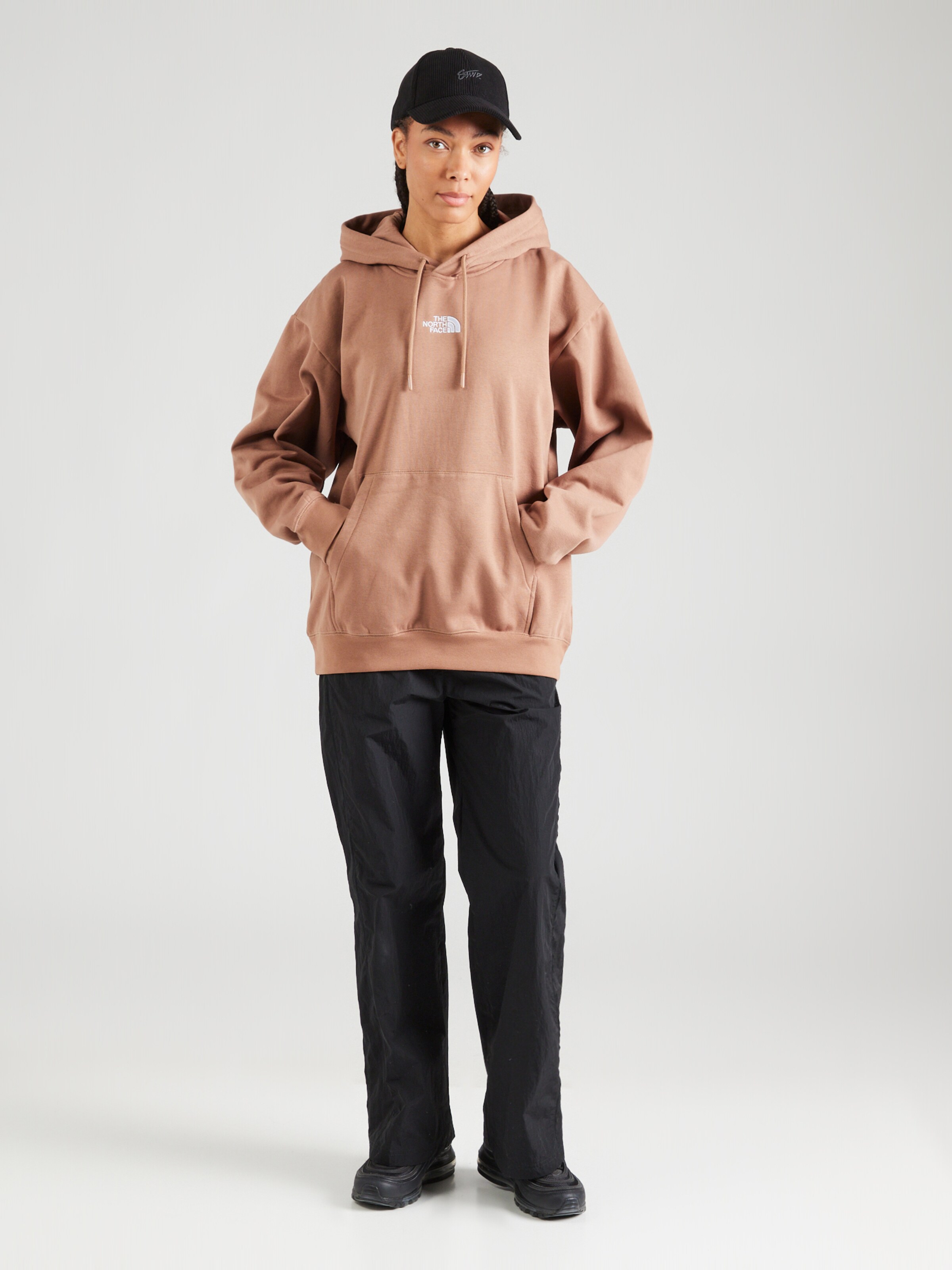 brown north face jumper