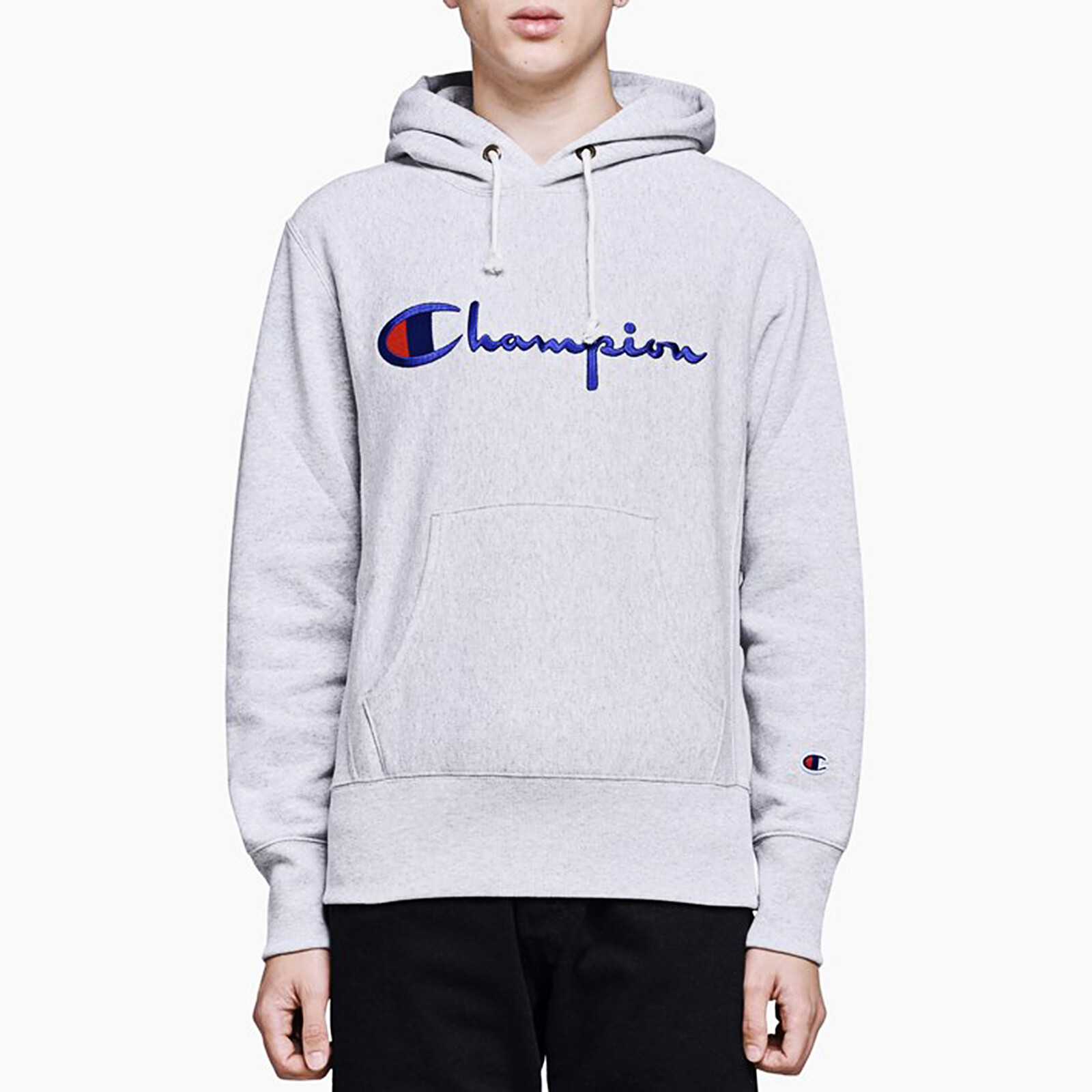 champion life men's reverse weave script logo pullover hoodie