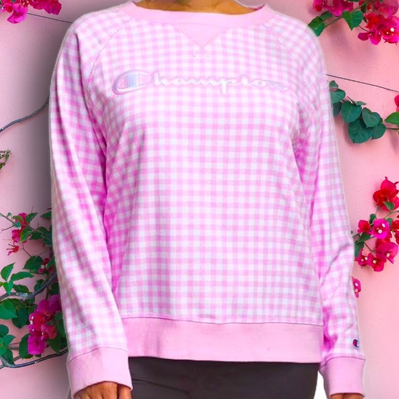 champion pink gingham sweatshirt