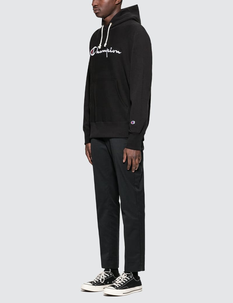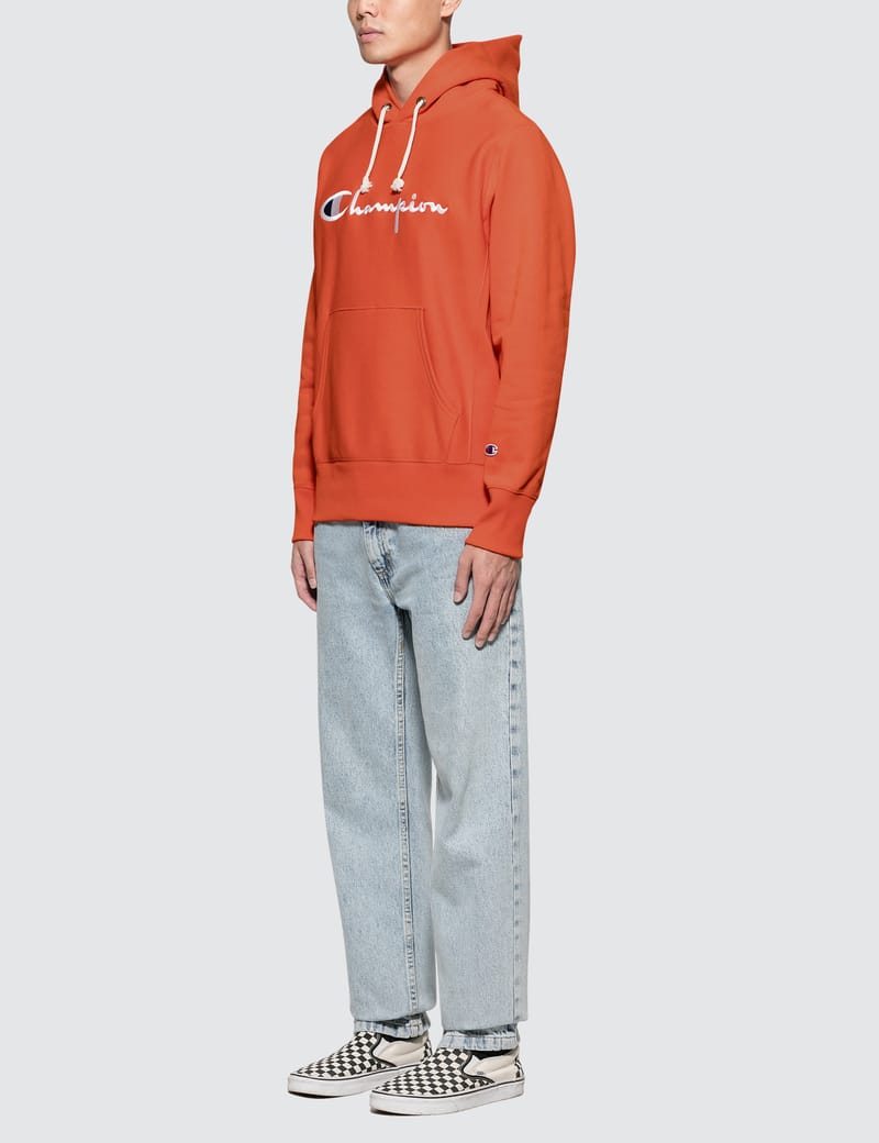 champion reverse weave script logo hoodie