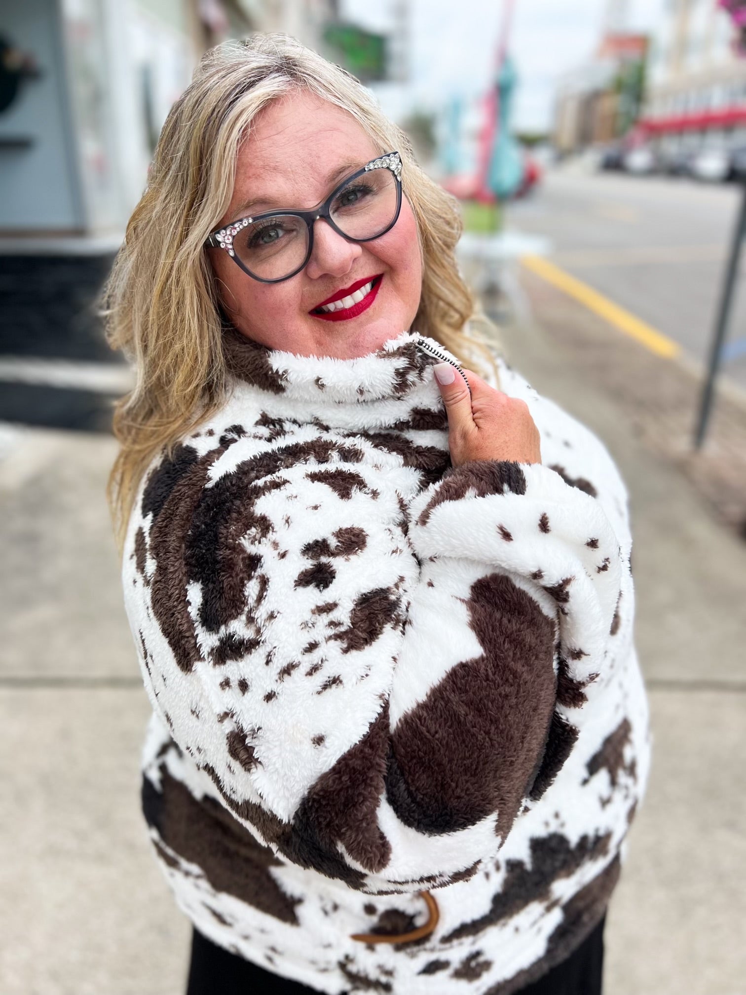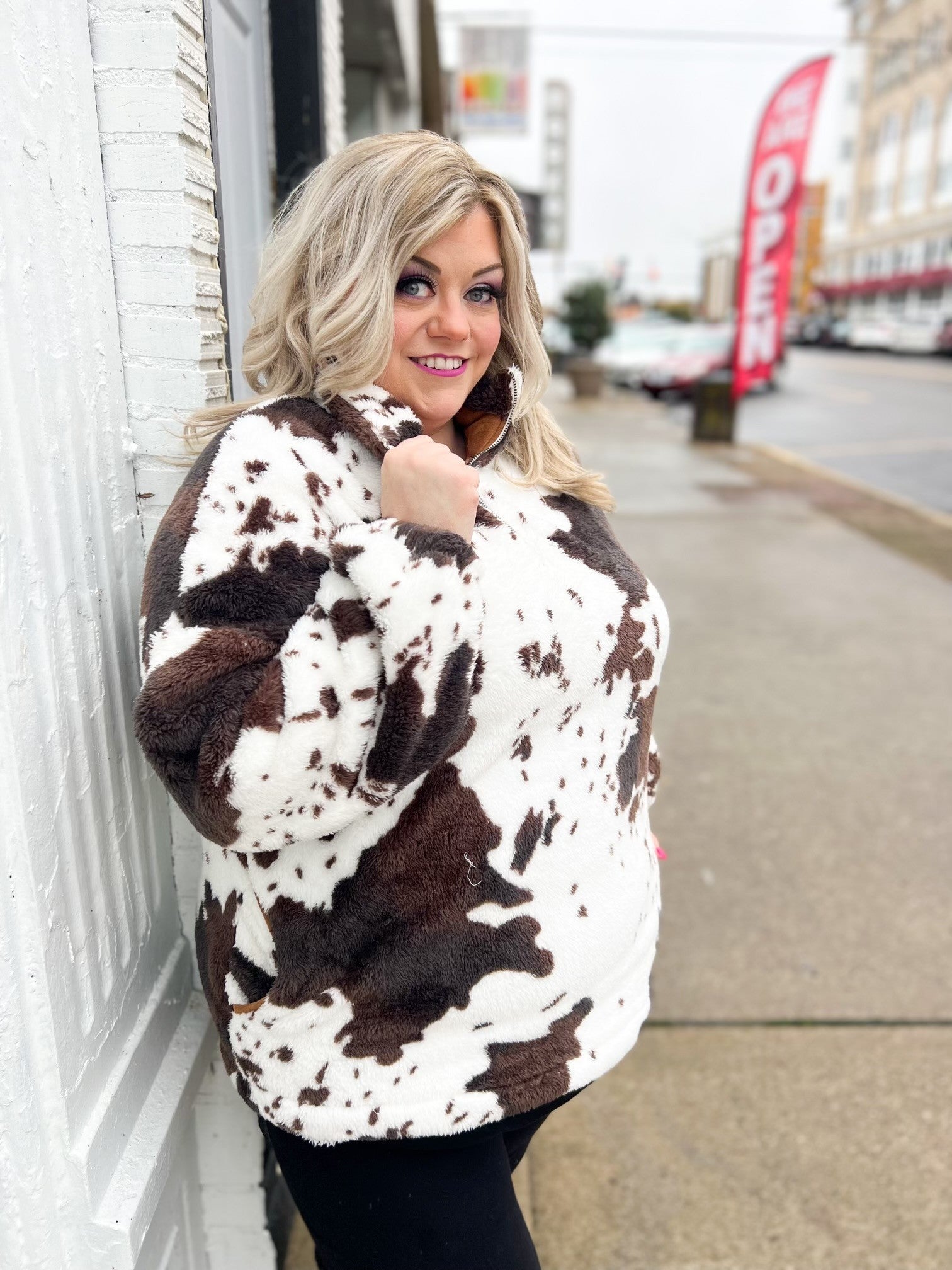 cowhide sherpa pullover