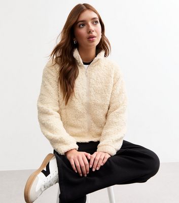 cream zip up fleece