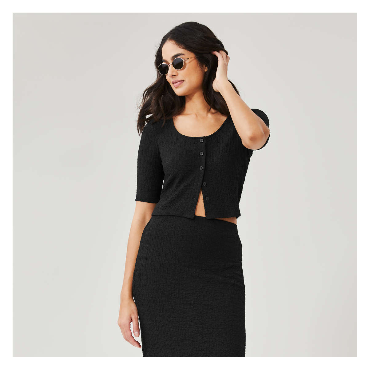crew neck with button up