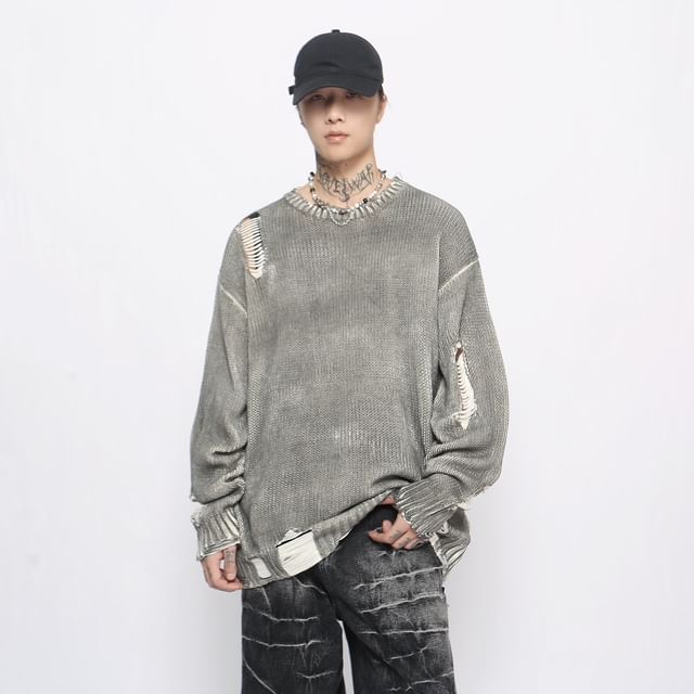 distressed tie dye sweater