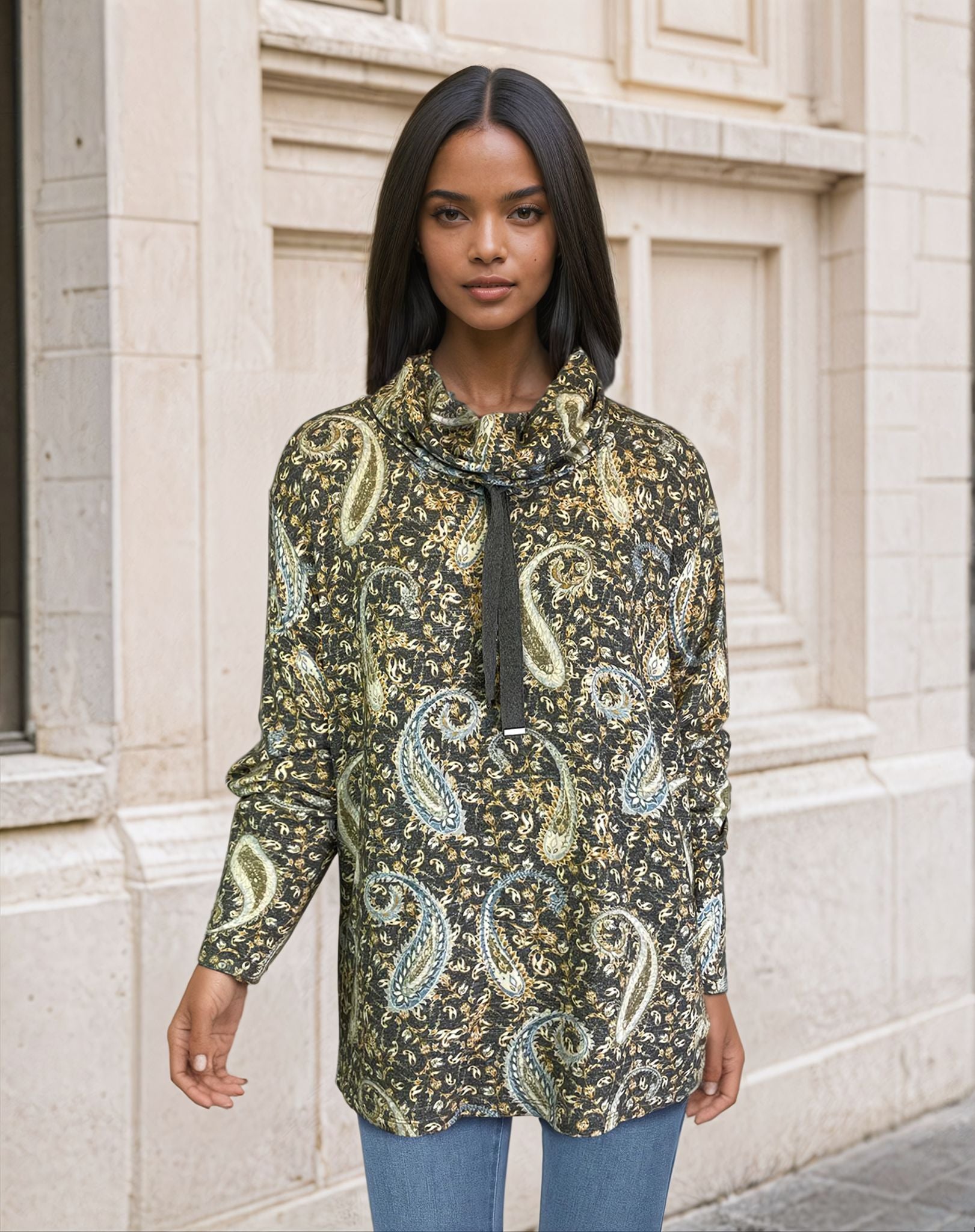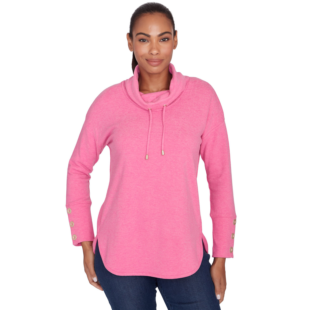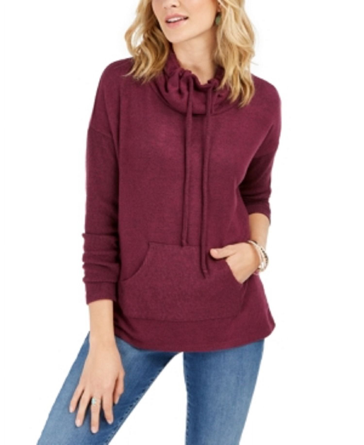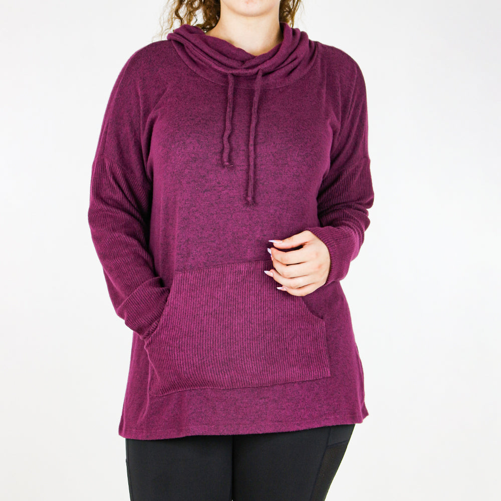 drawstring cowl neck pullover