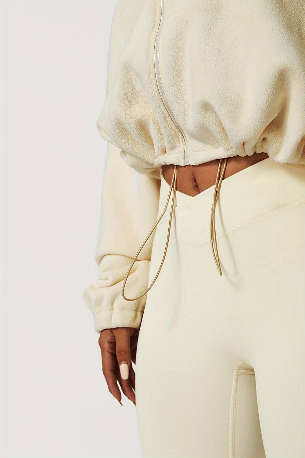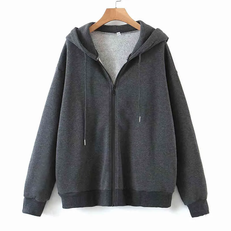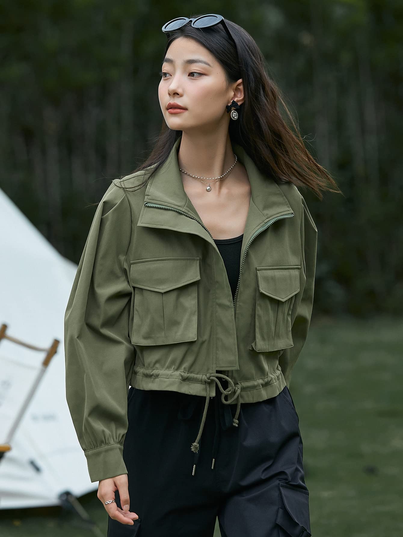 drop shoulder zip up drawstring jacket
