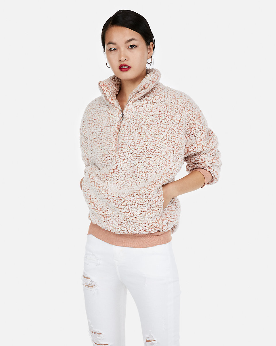 express one eleven oversized sherpa fleece sweatshirt