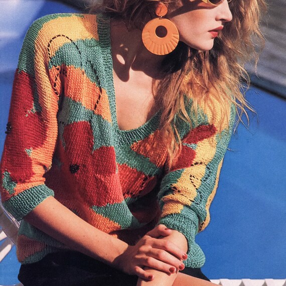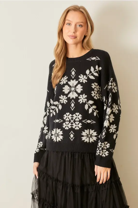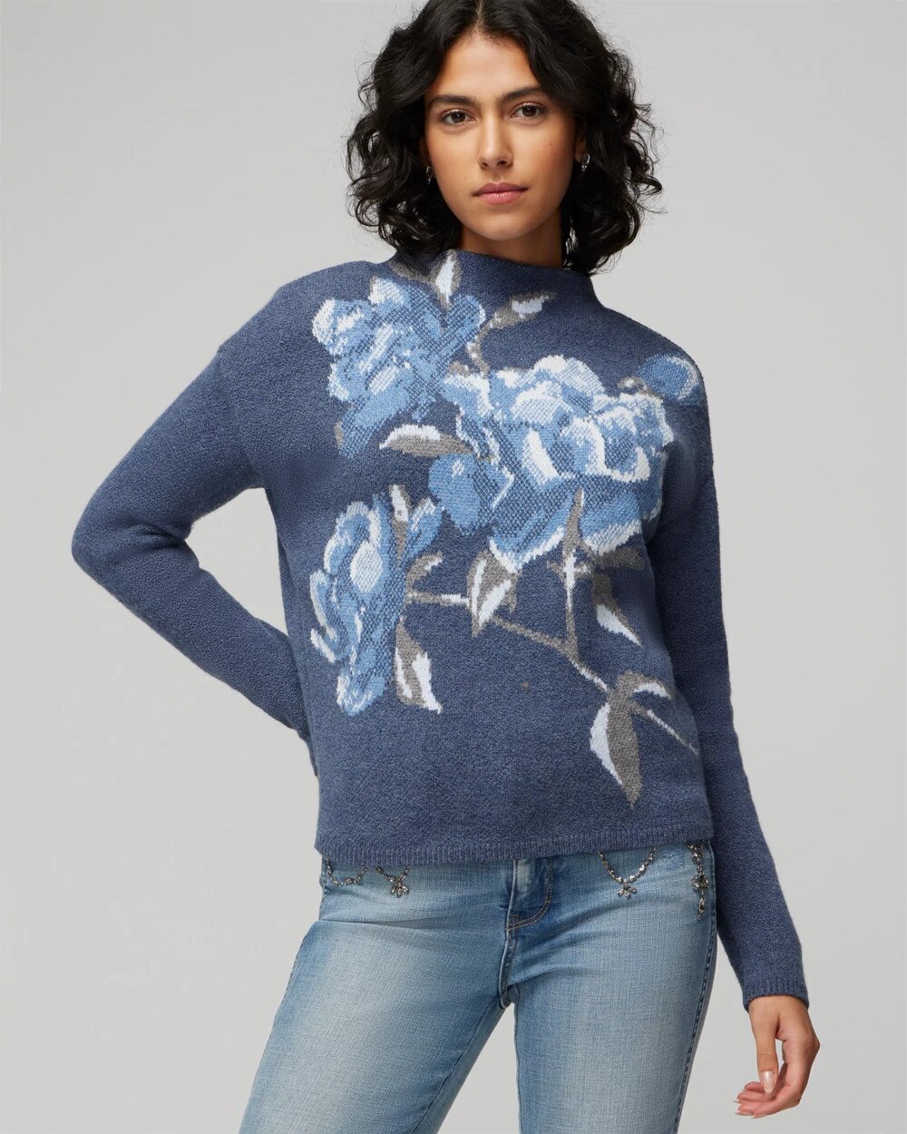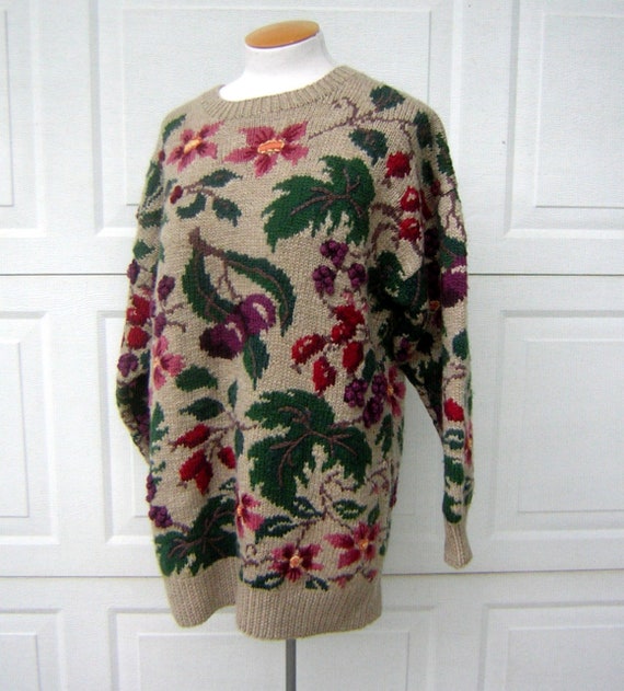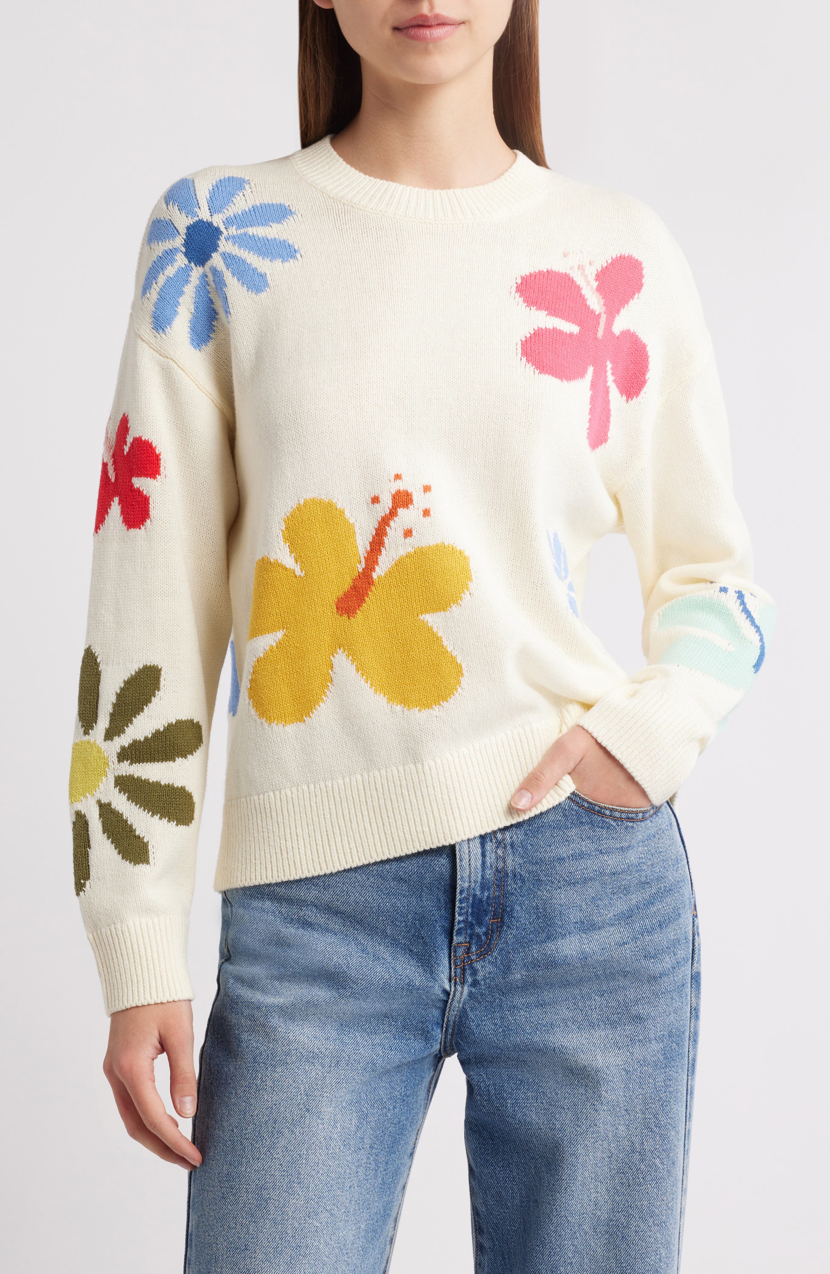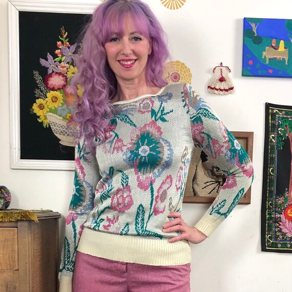 floral intarsia pullover sweater