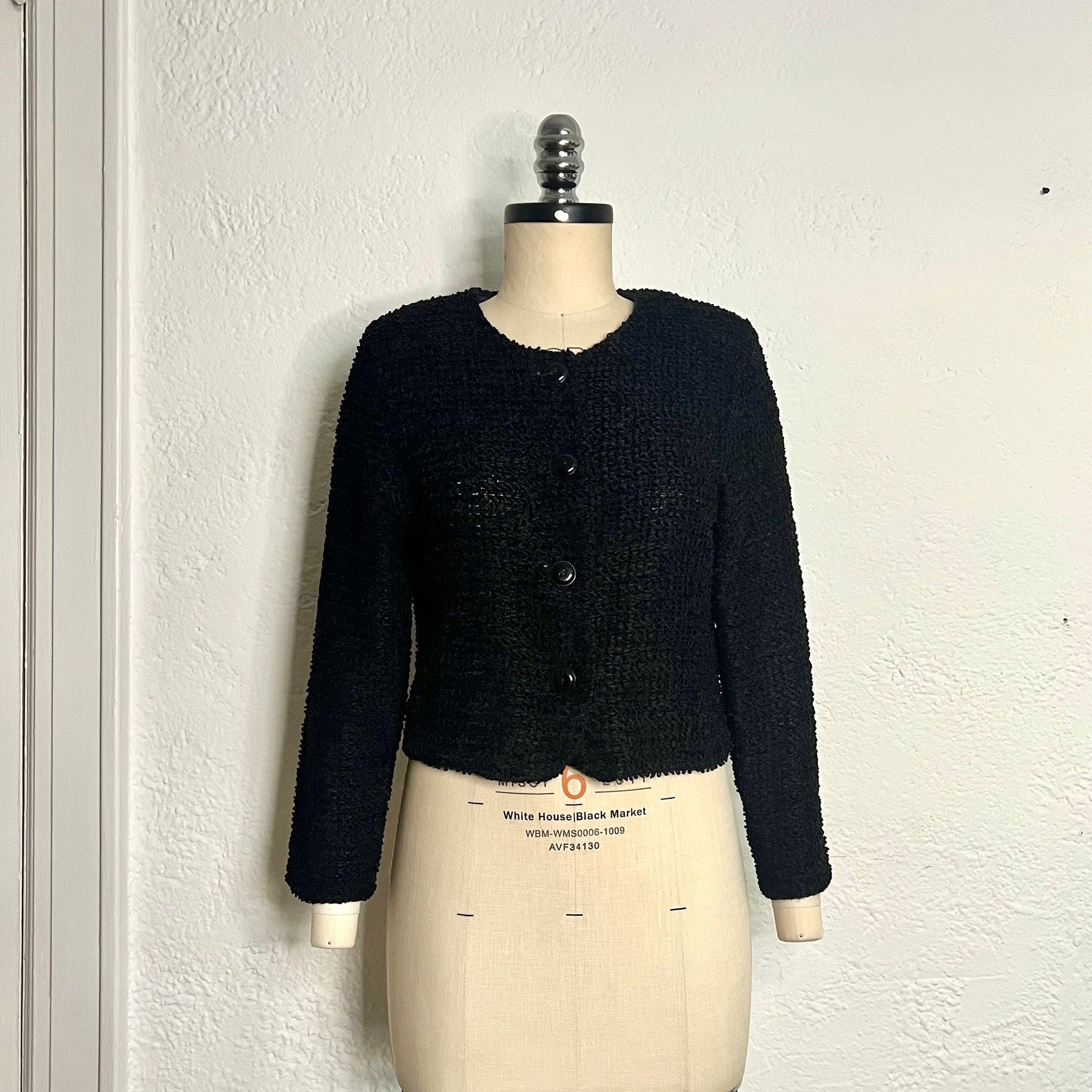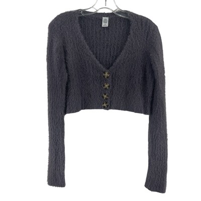 fuzzy cropped button up sweater