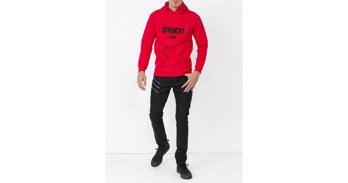 givenchy red destroyed hoodie