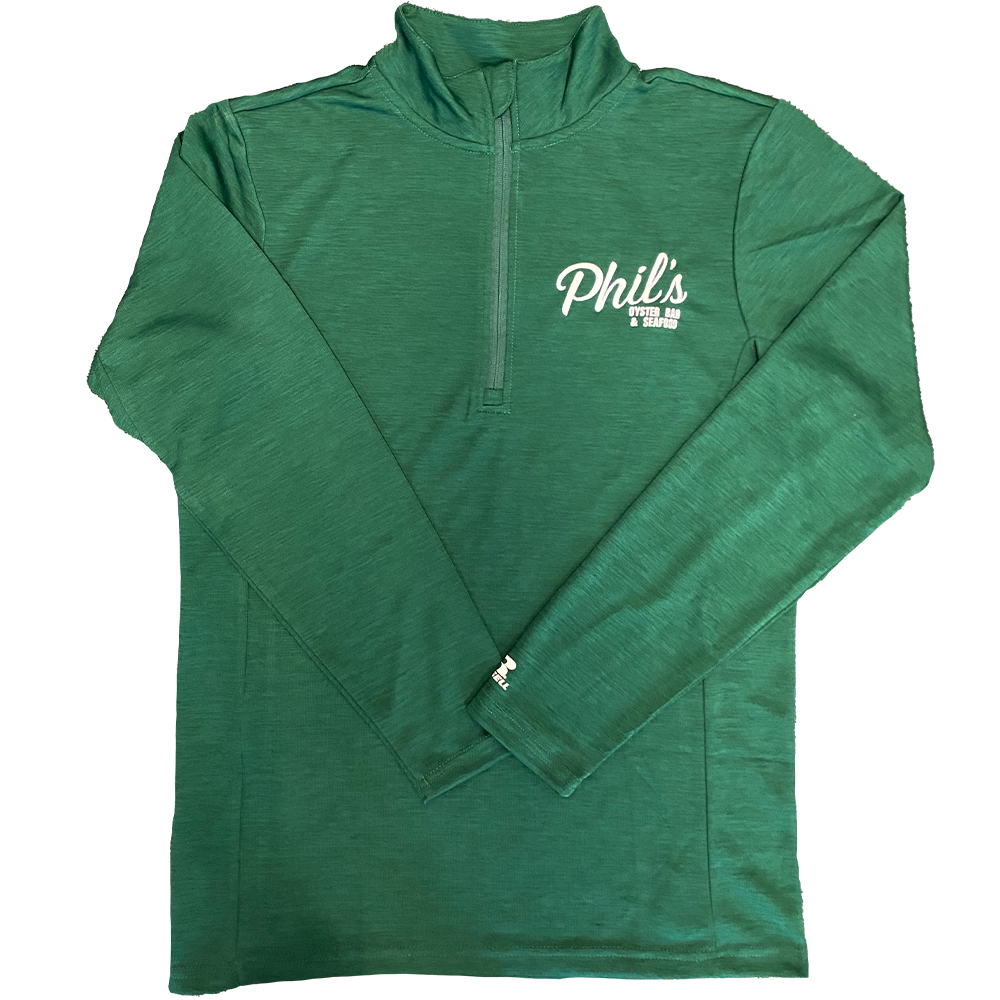 green quarter zip pullover