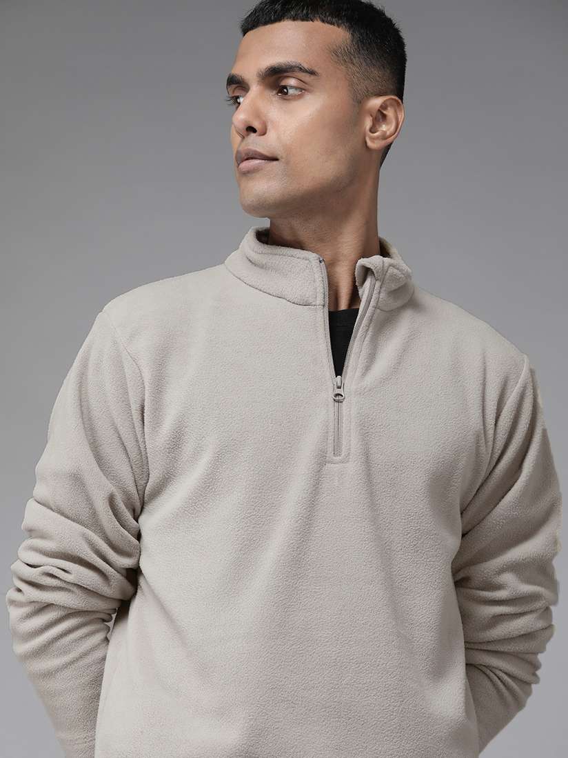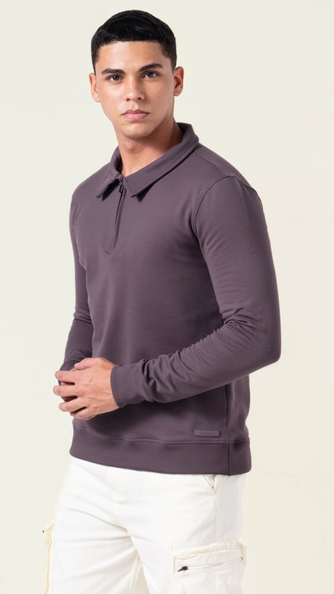 grey collared sweatshirt