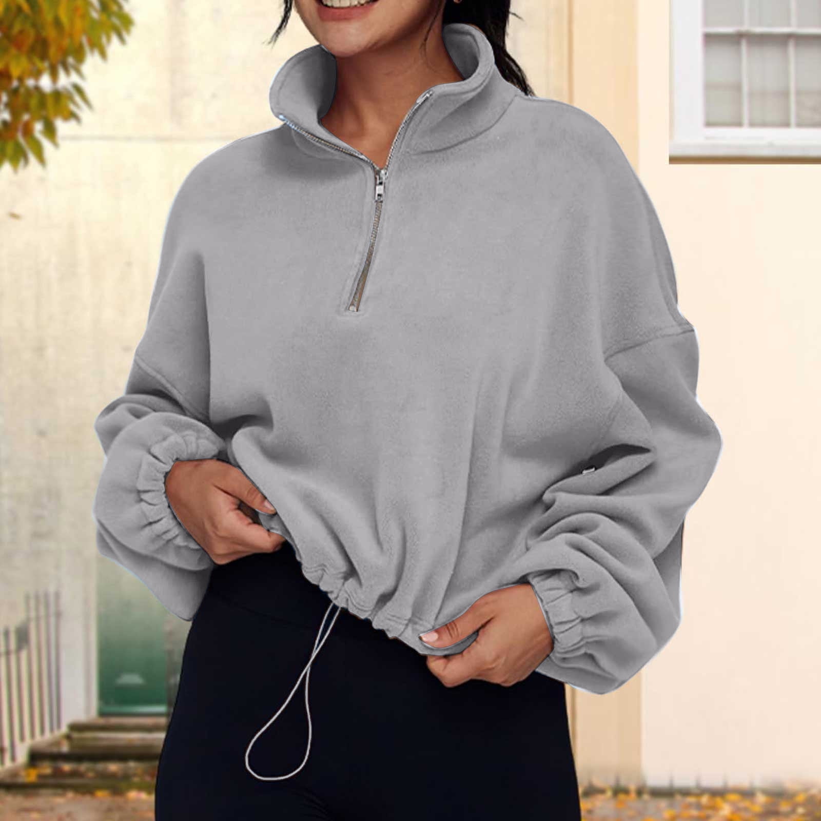 grey half zip pullover women's