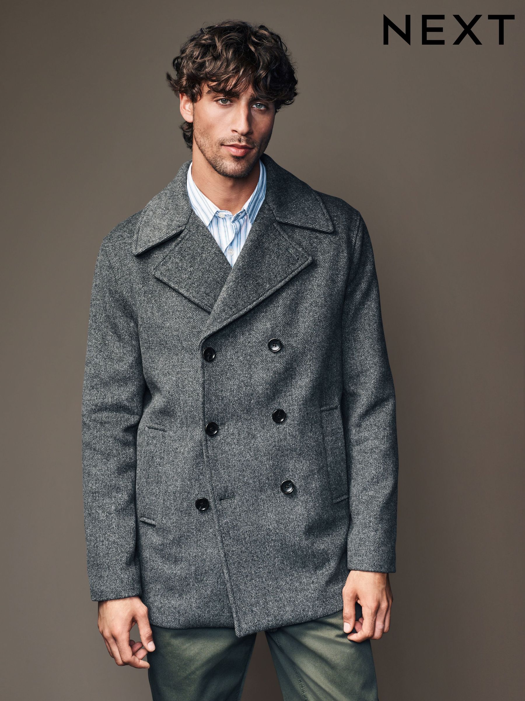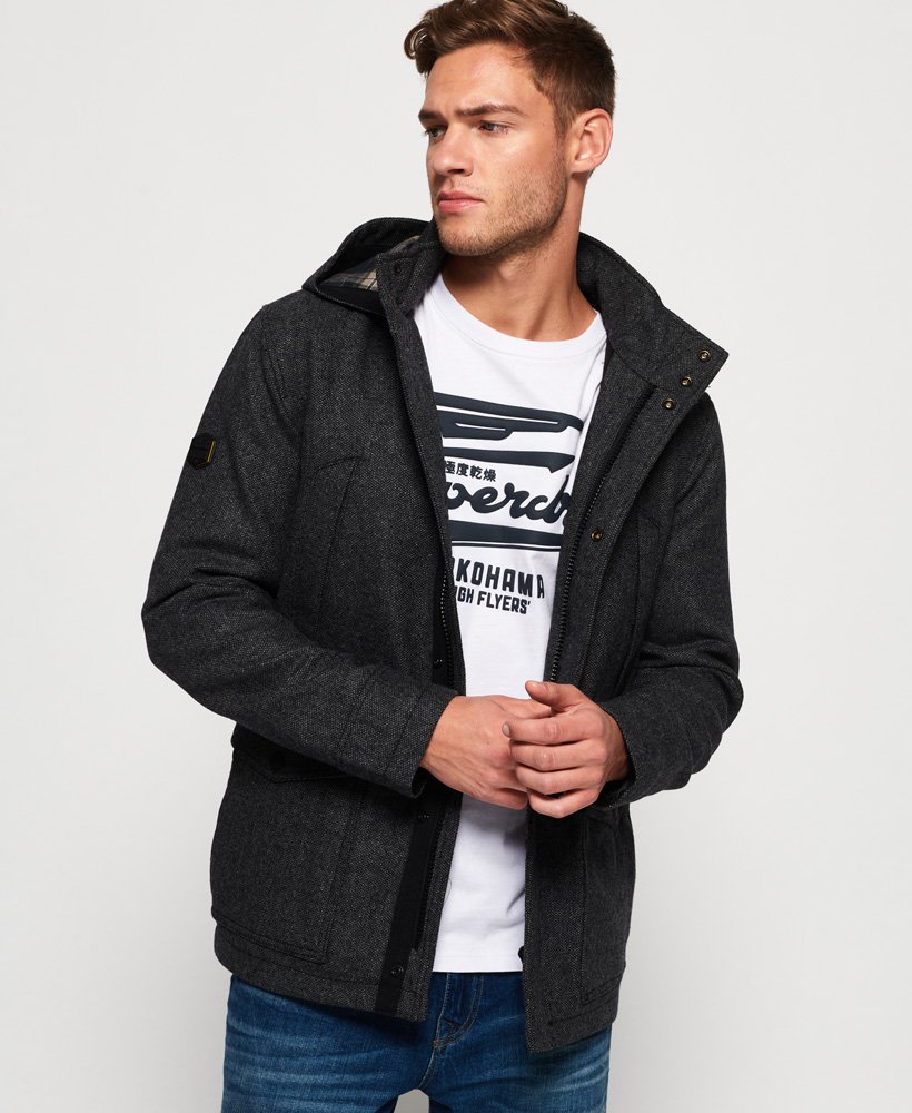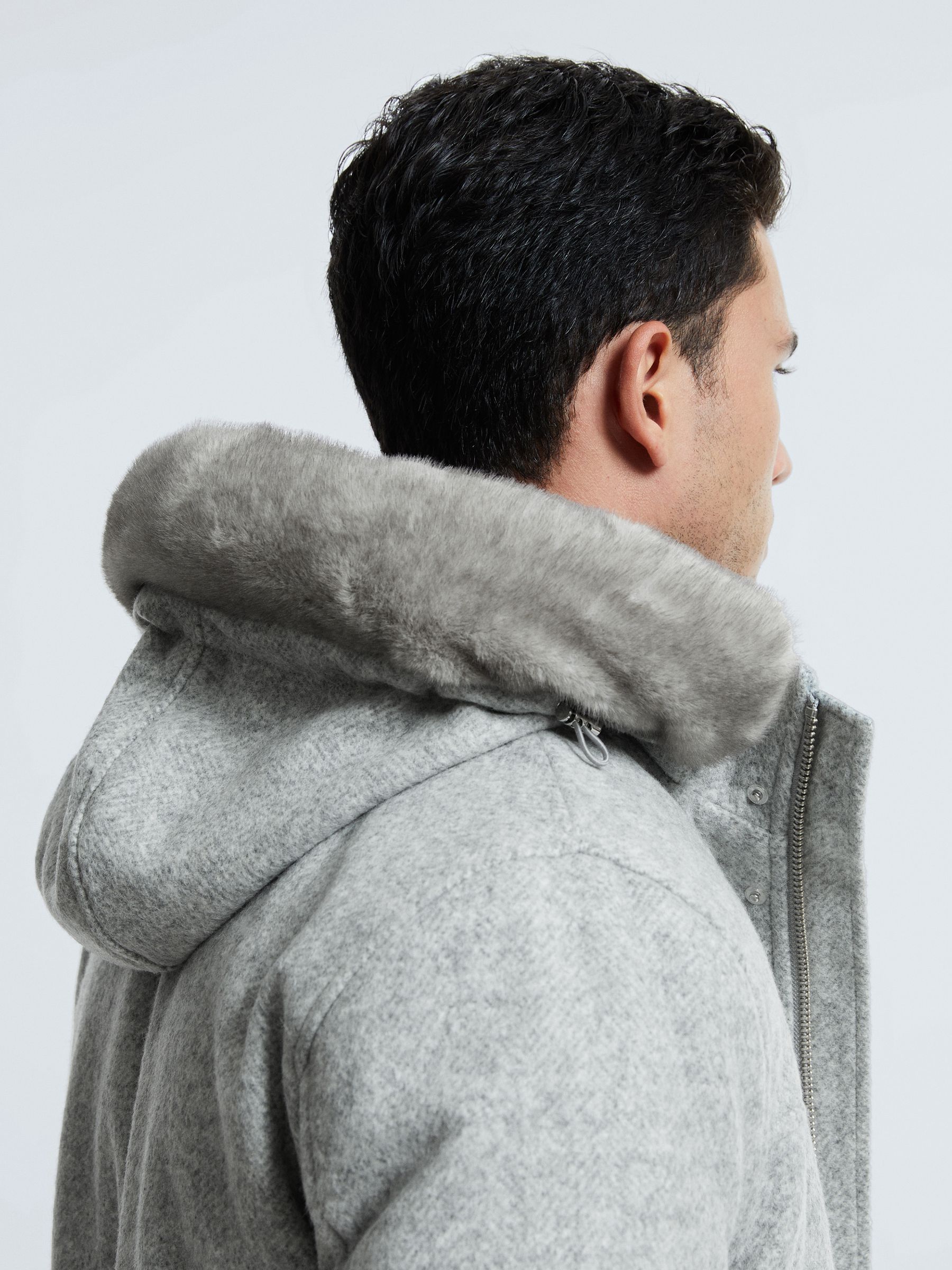 grey hooded wool coat