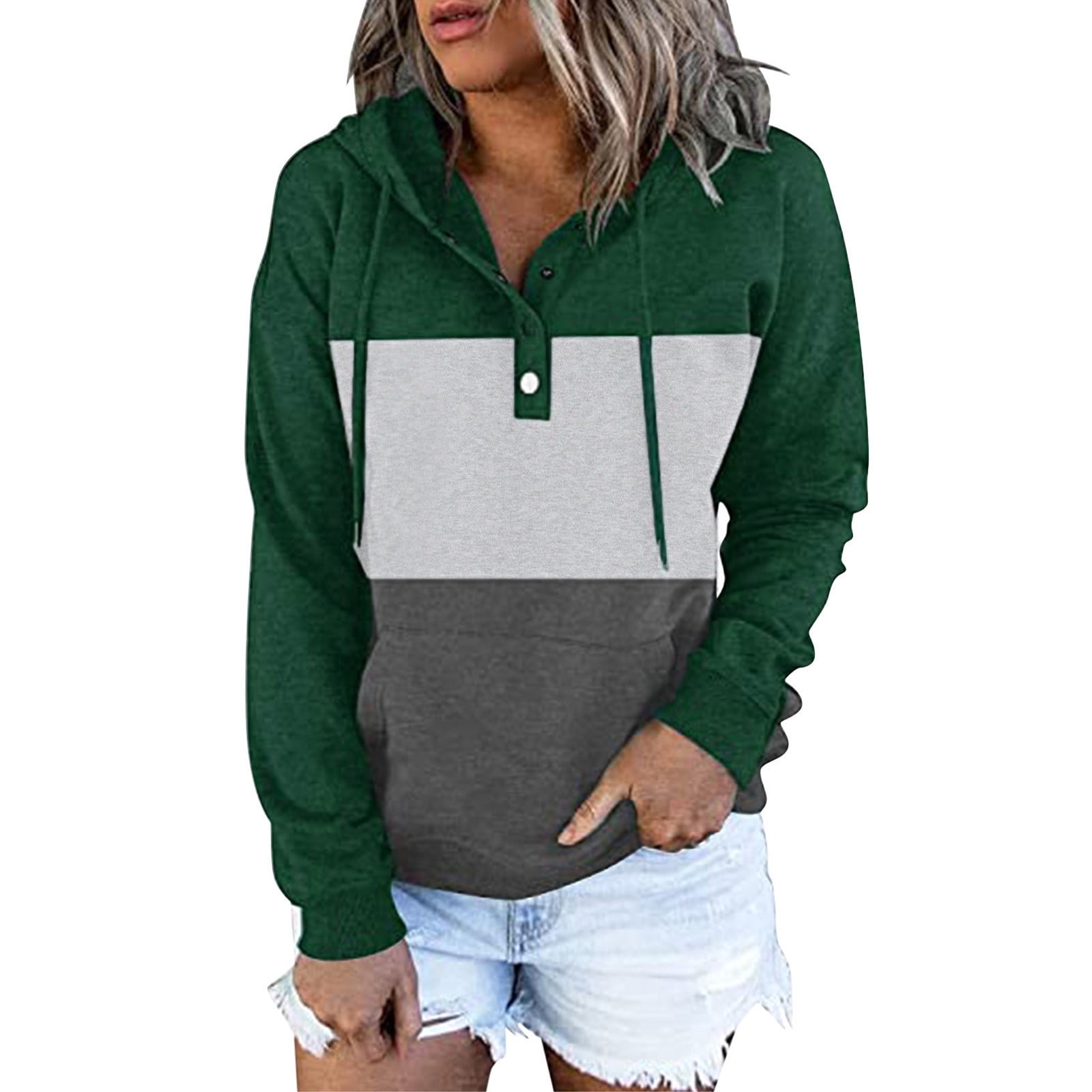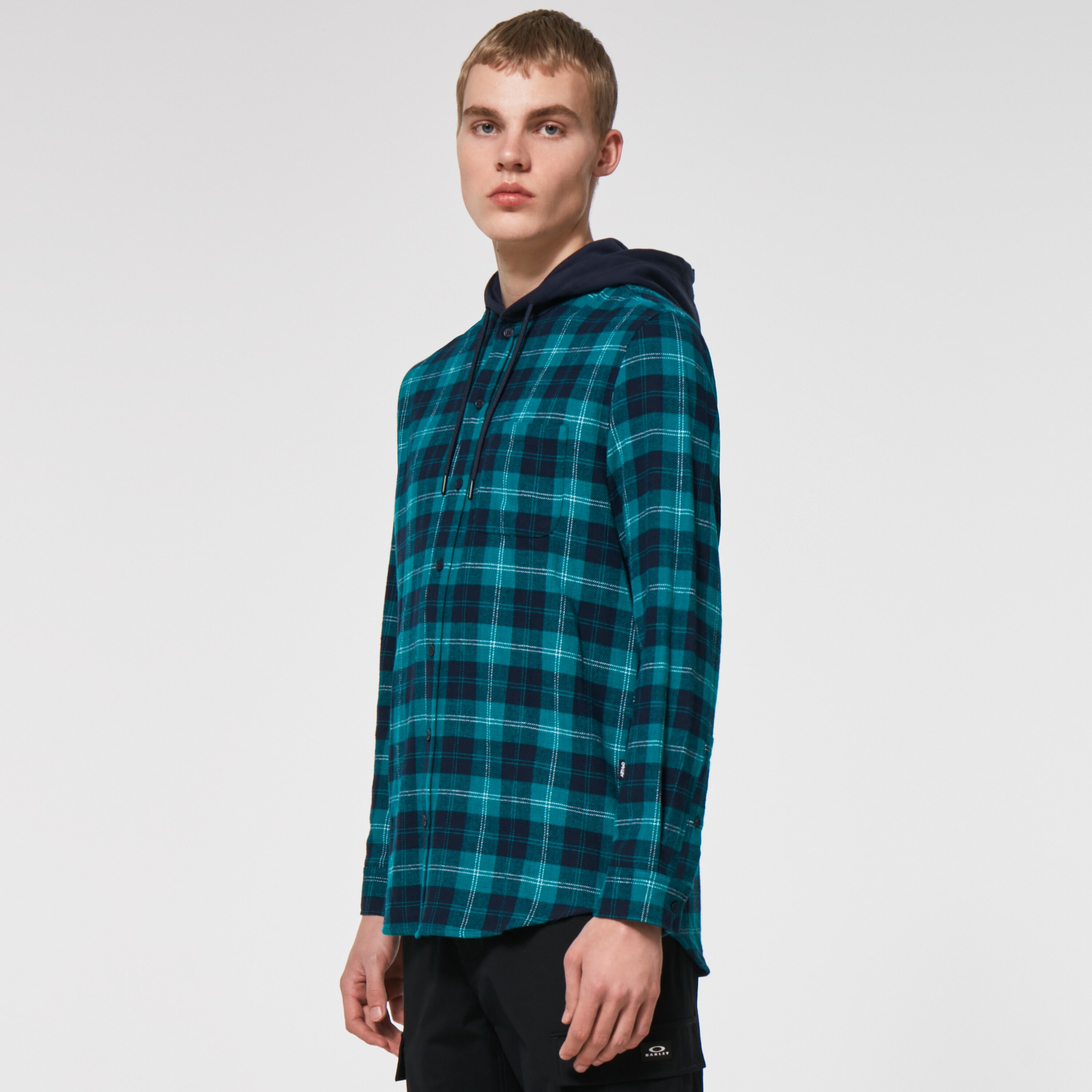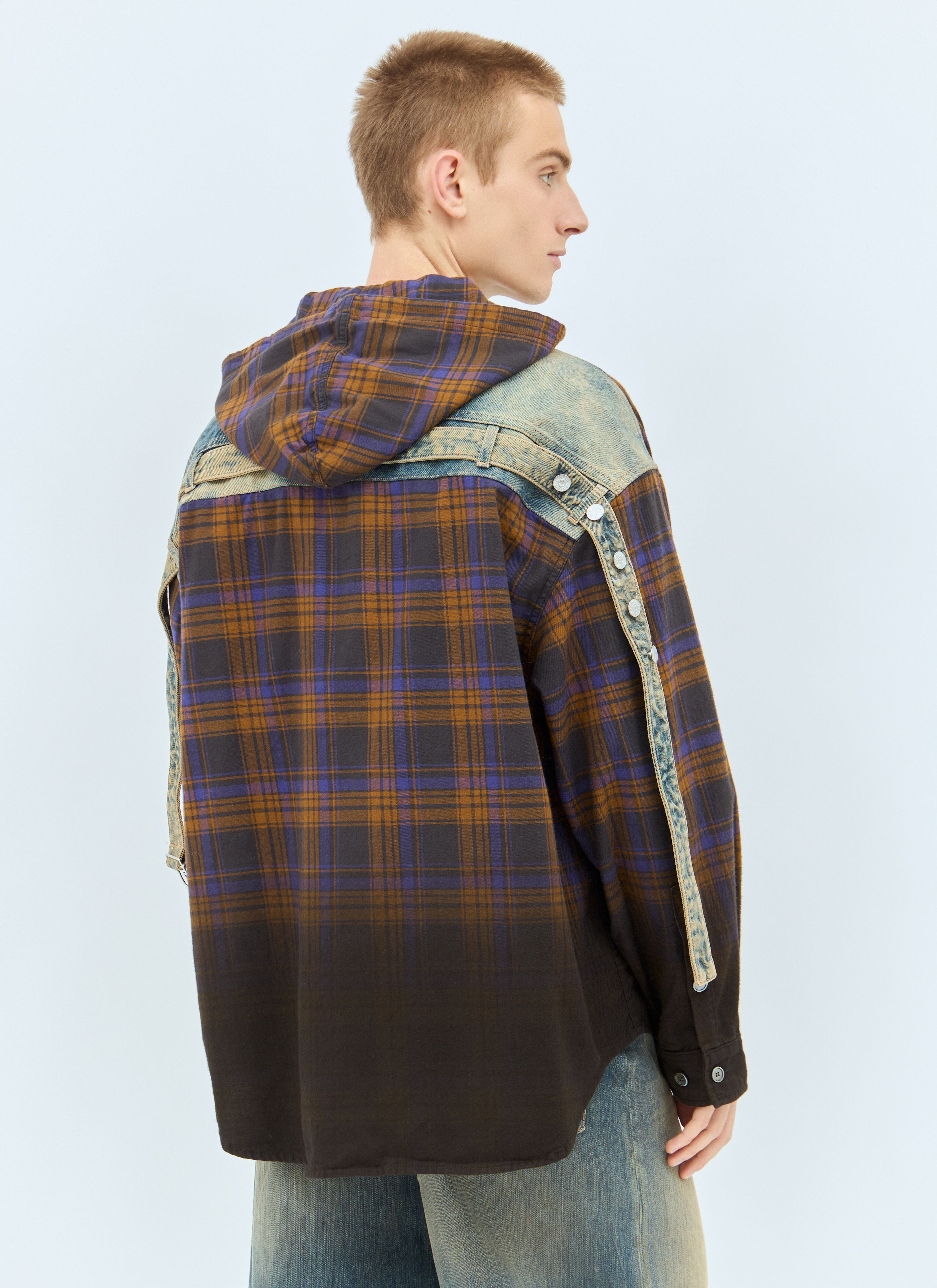 hooded button front check sweatshirt