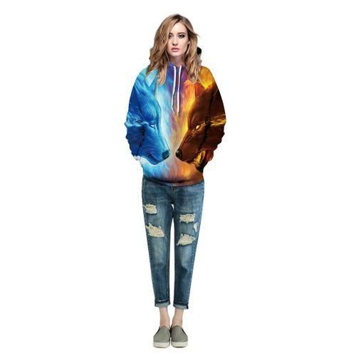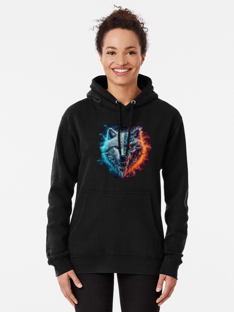 ice fire wolf hoodie