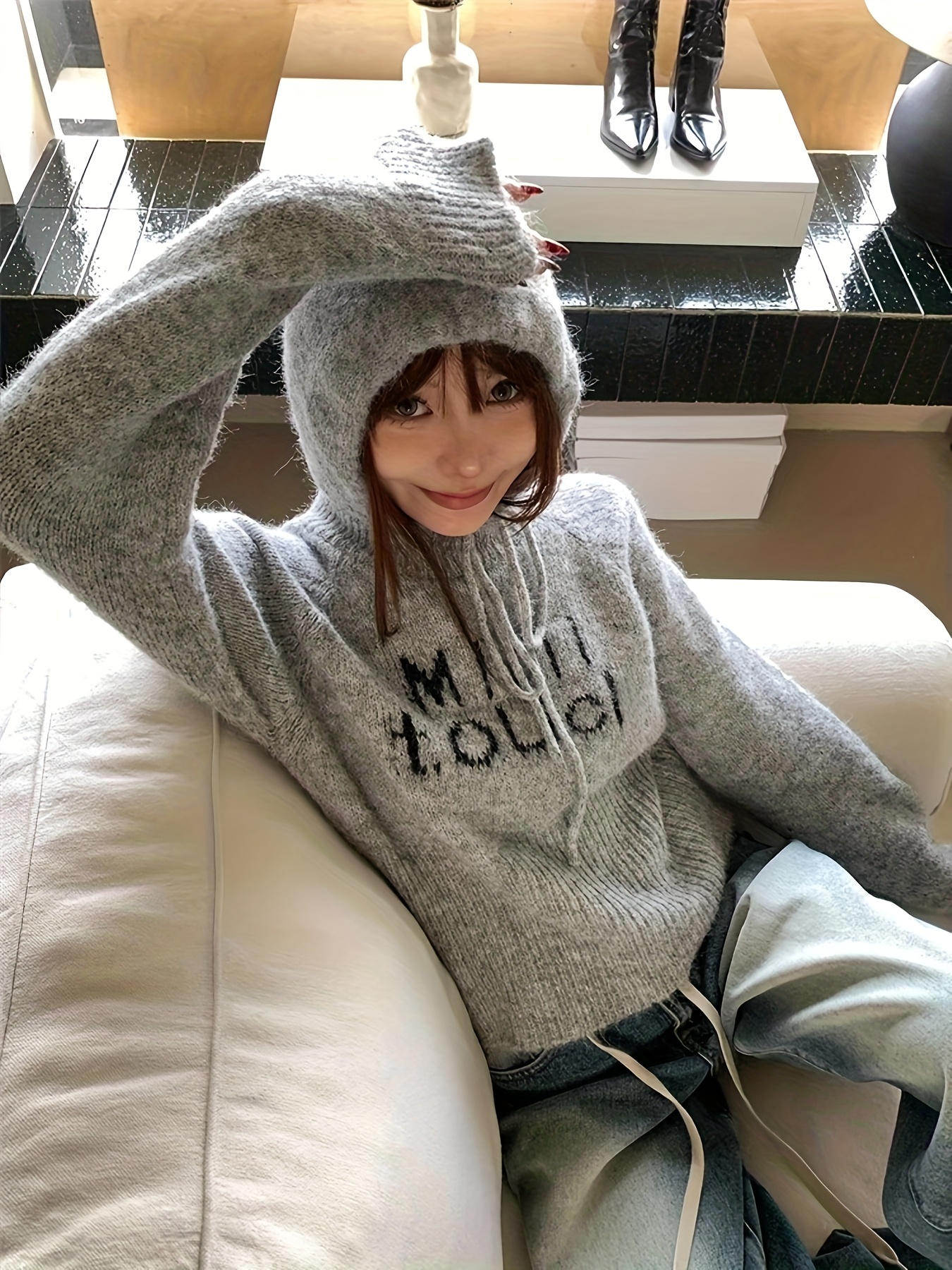 knit pullover hoodie