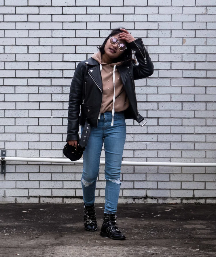 leather jacket sweatshirt