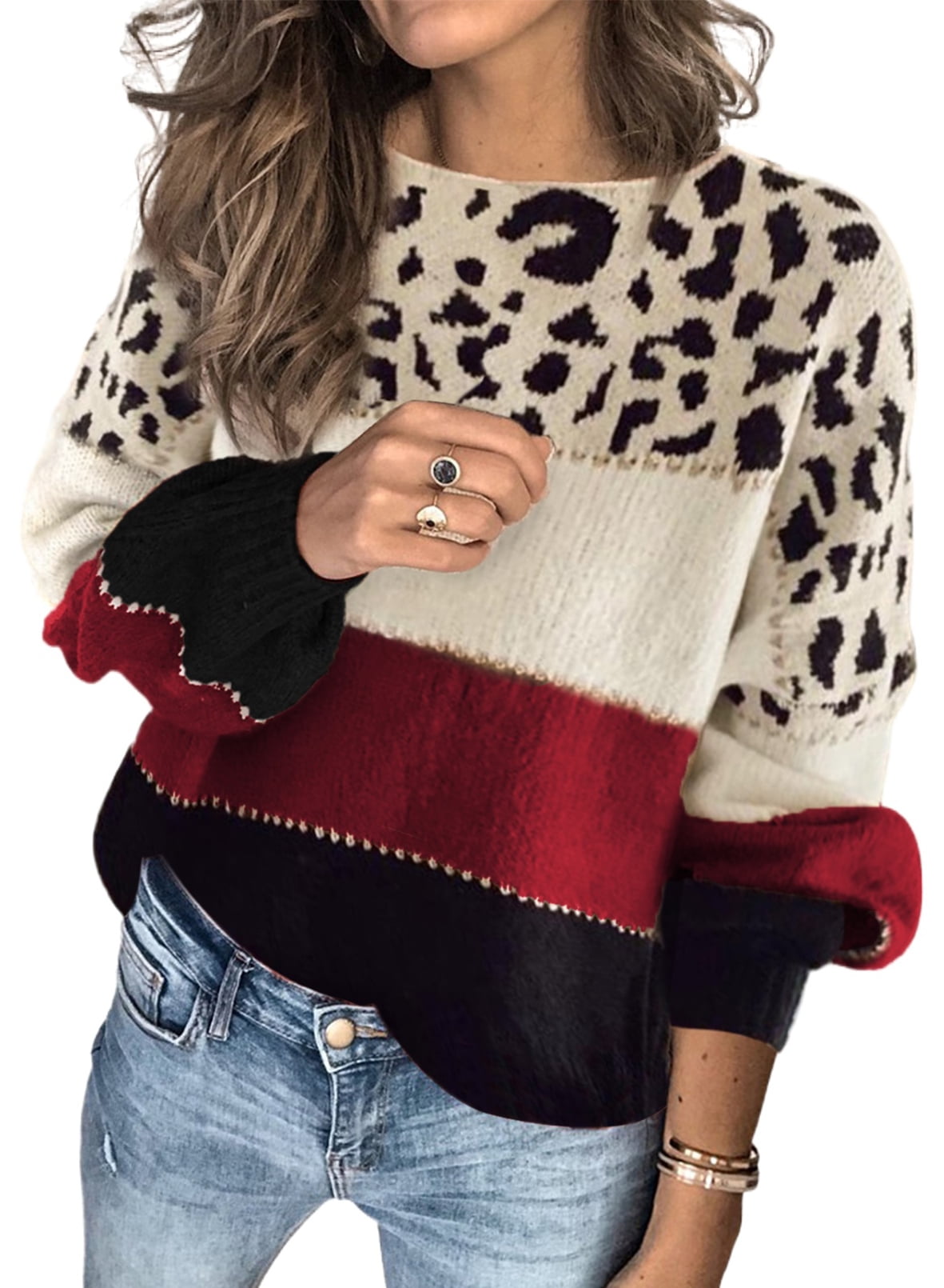leopard patchwork sweater