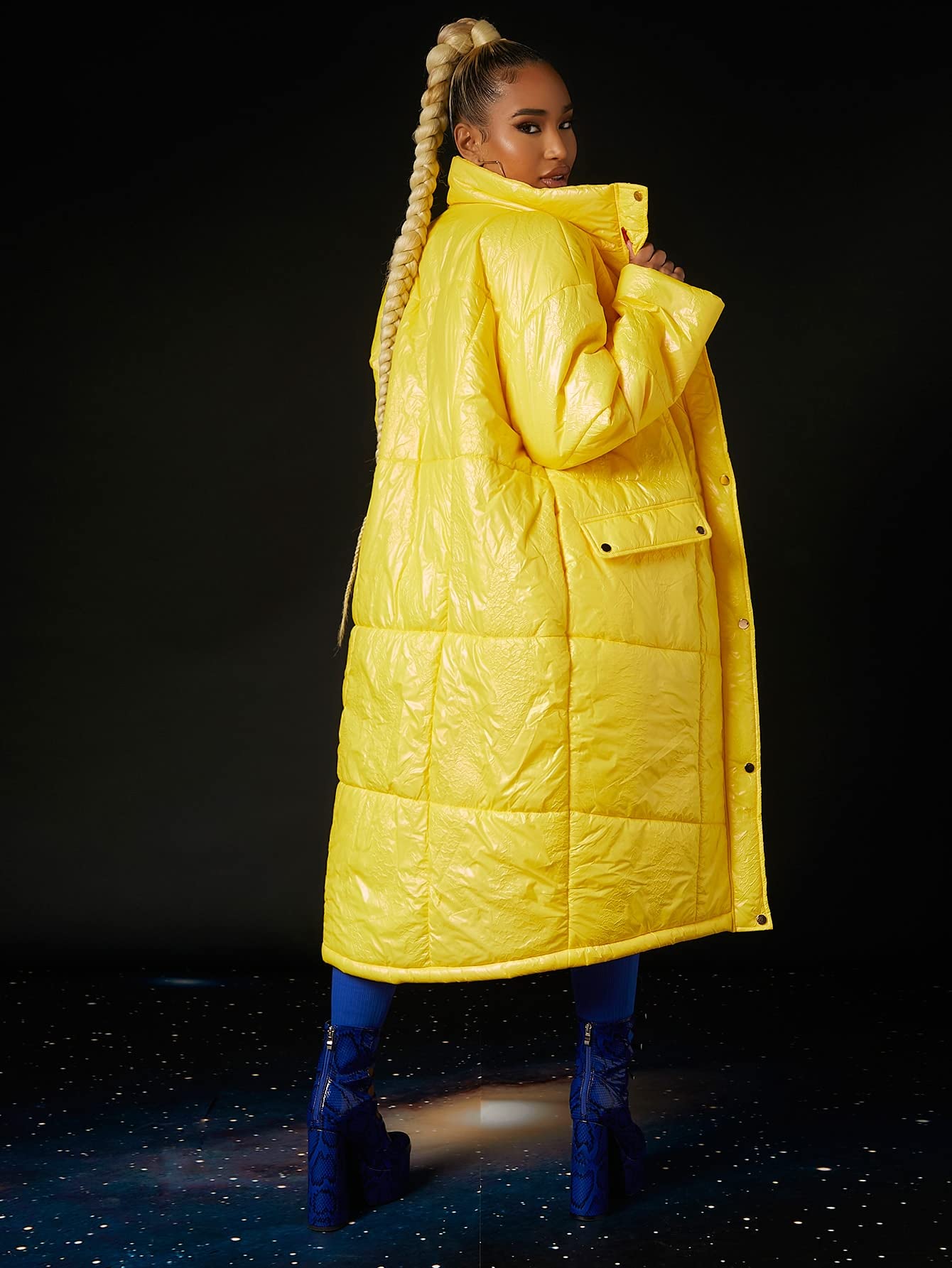 long yellow puffer coat