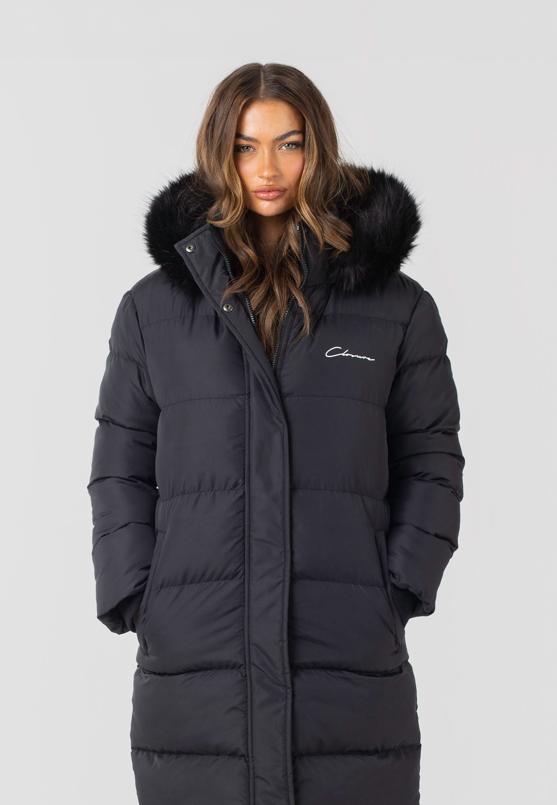 longline black coat puffer