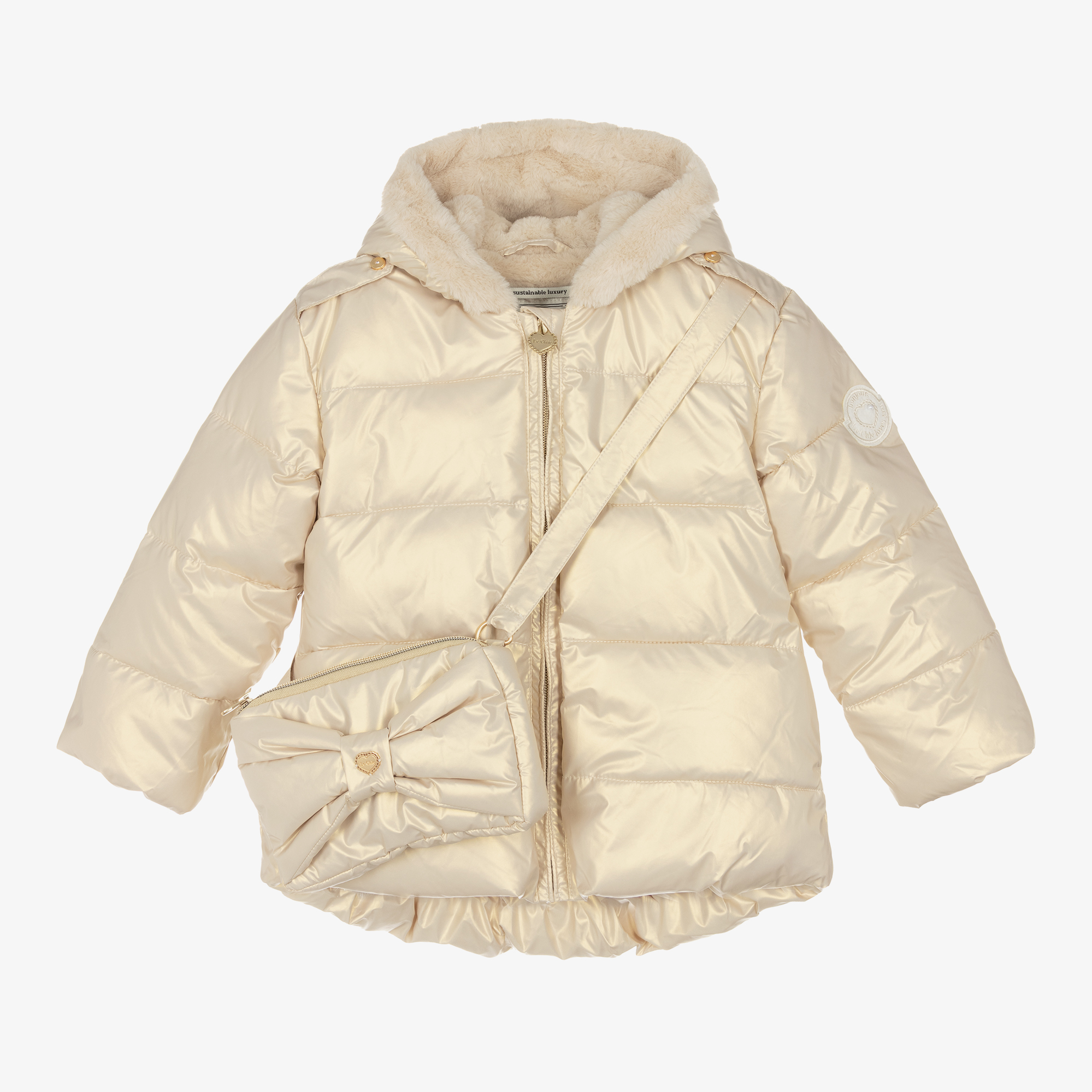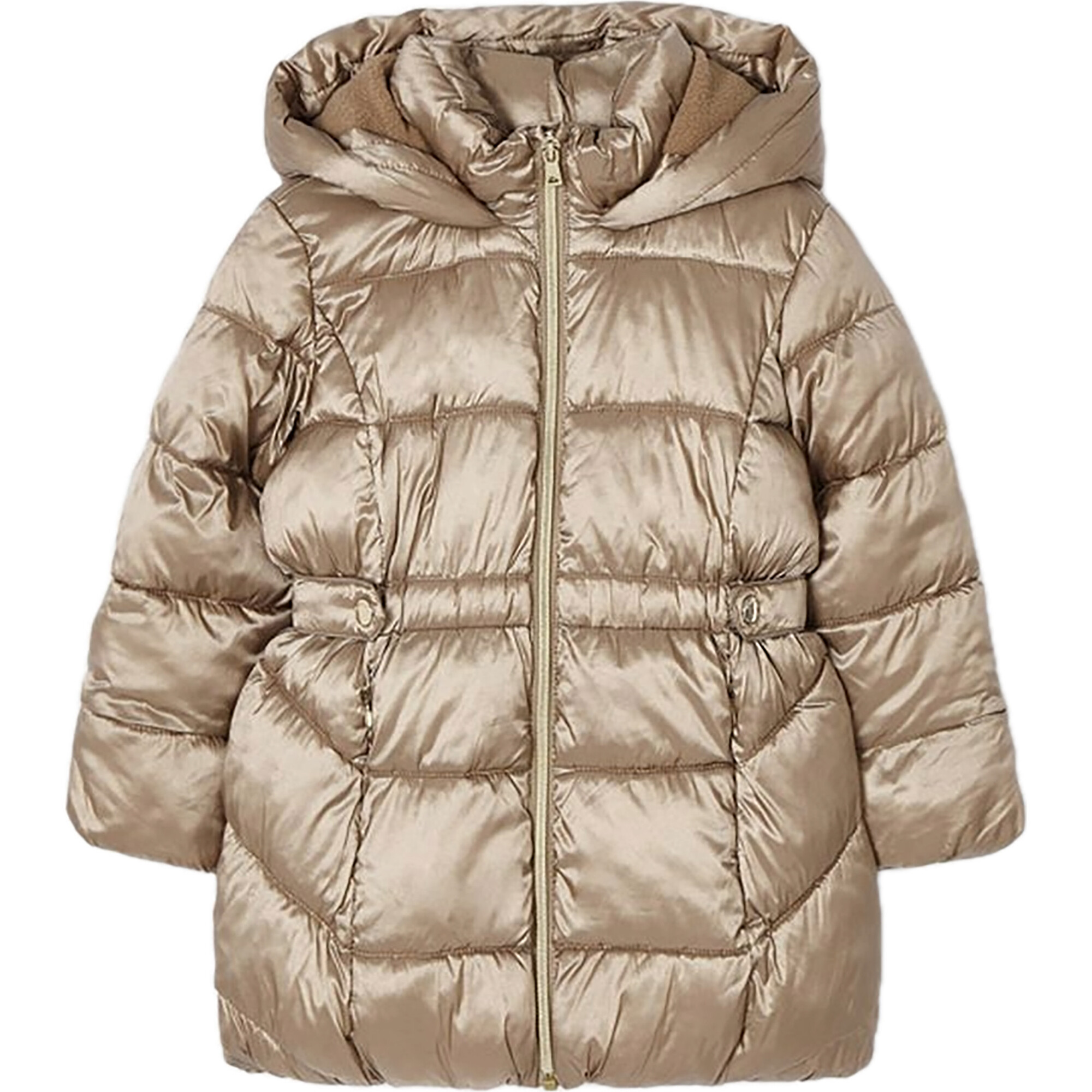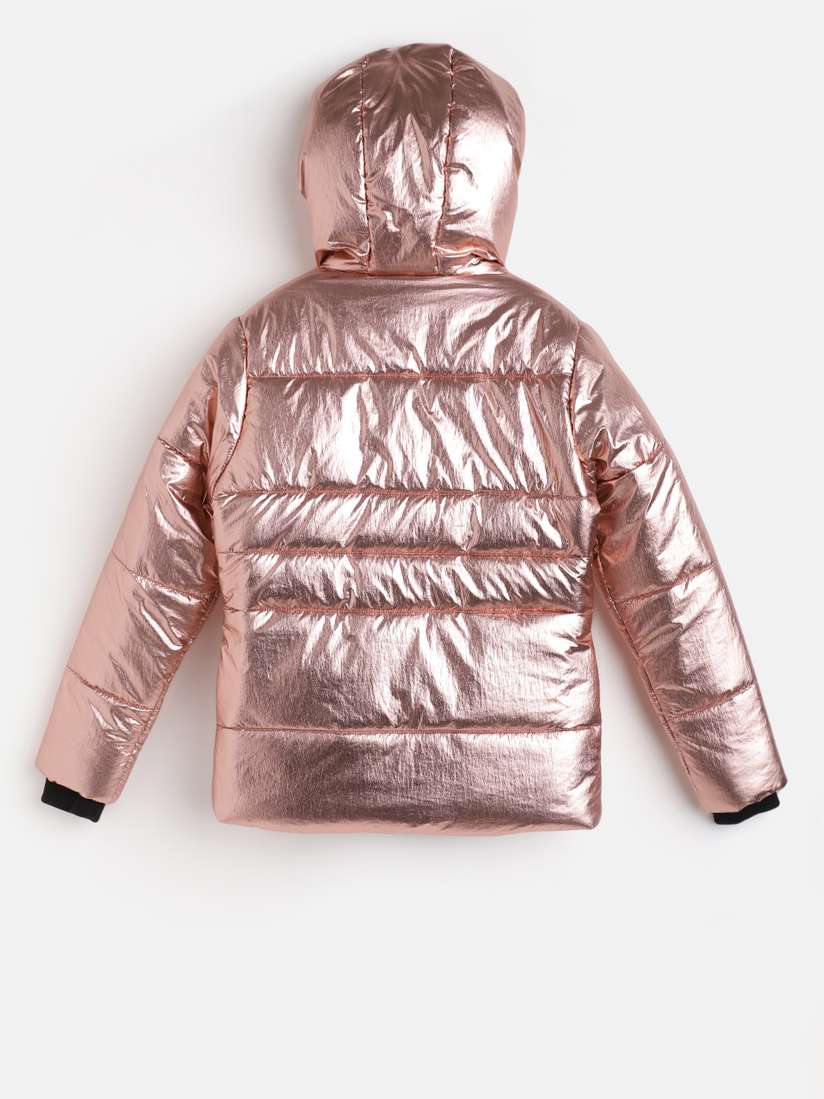 metallic hooded puffer jacket