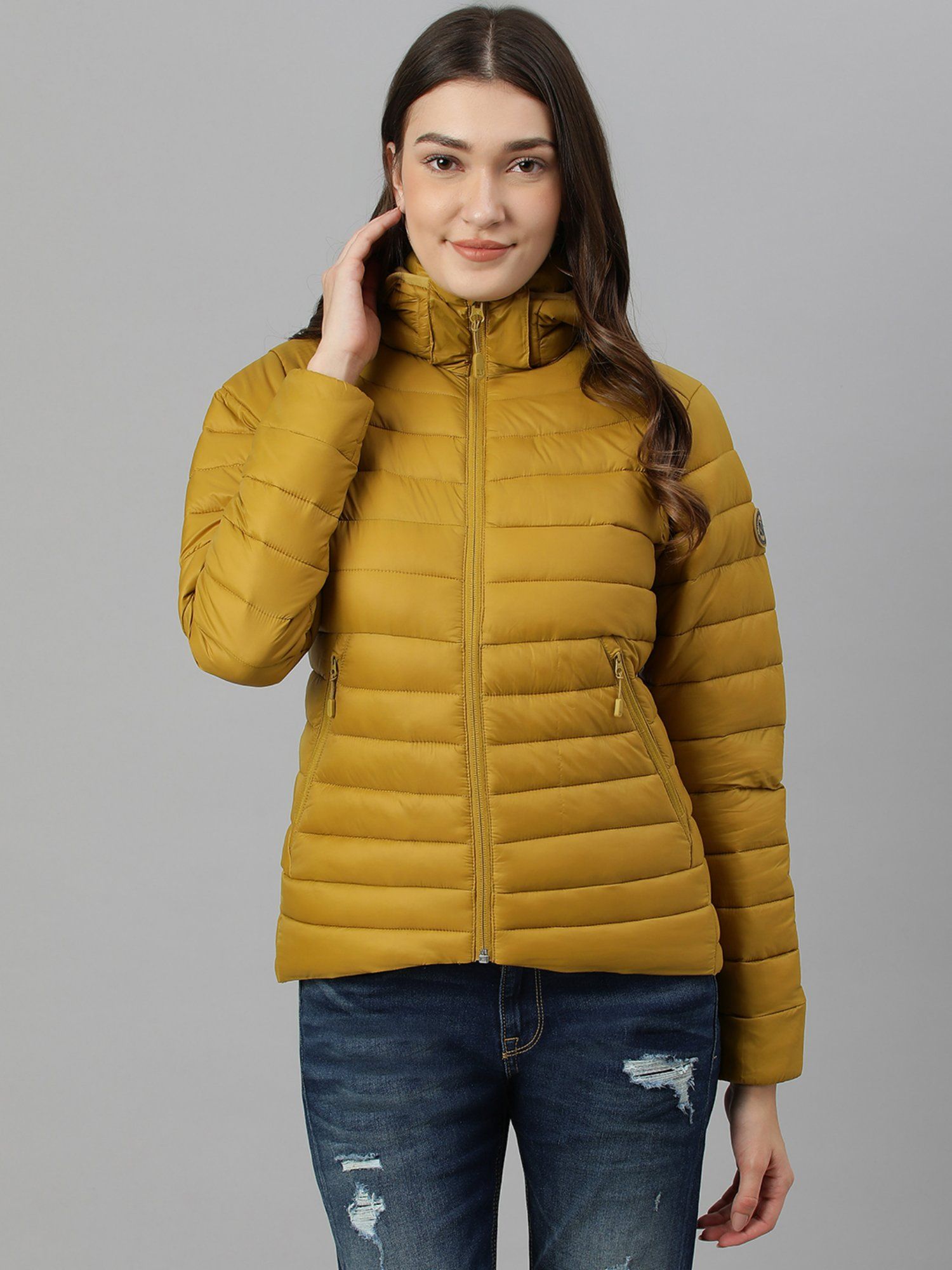 mustard hooded jacket