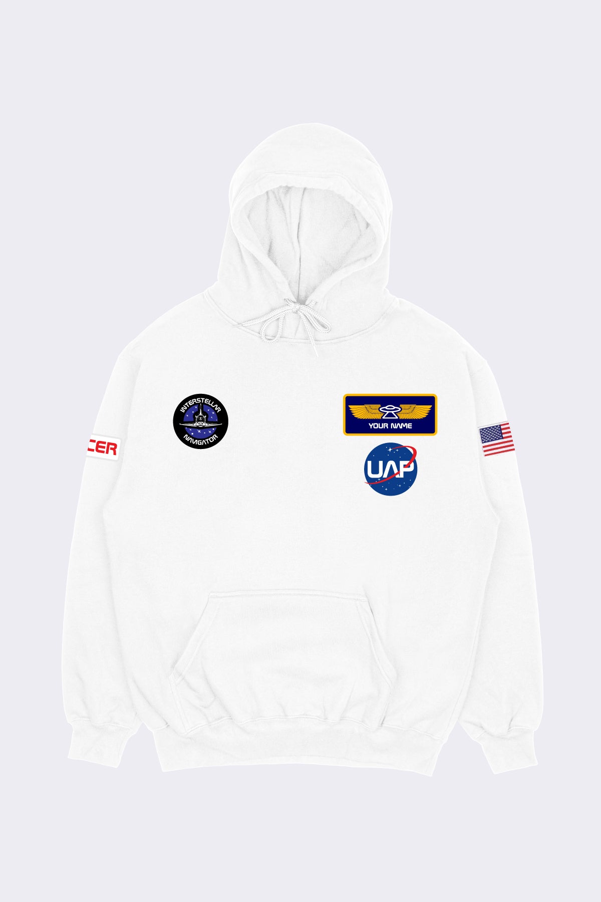 nasa patch white pullover hoodie