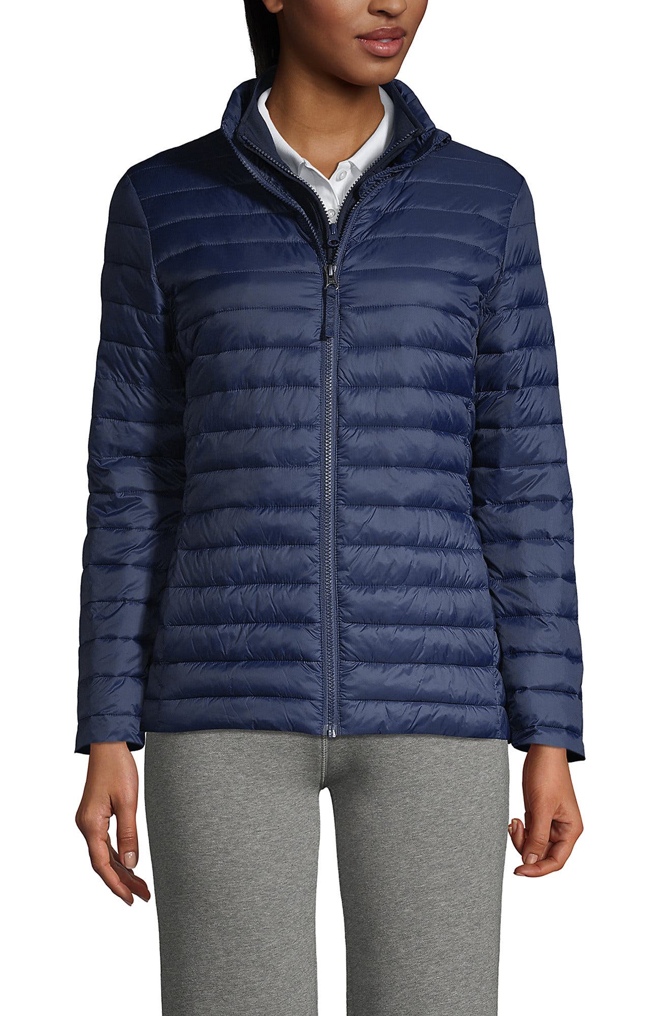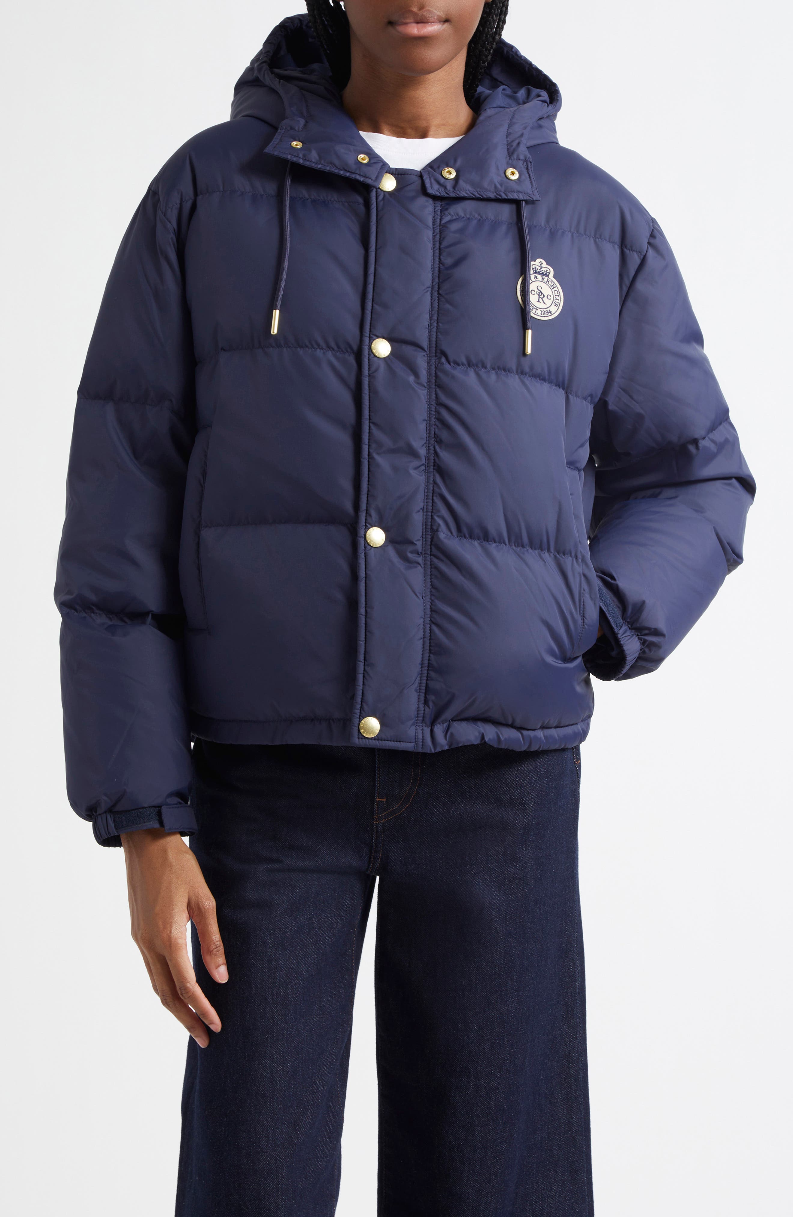 navy blue long puffer coat