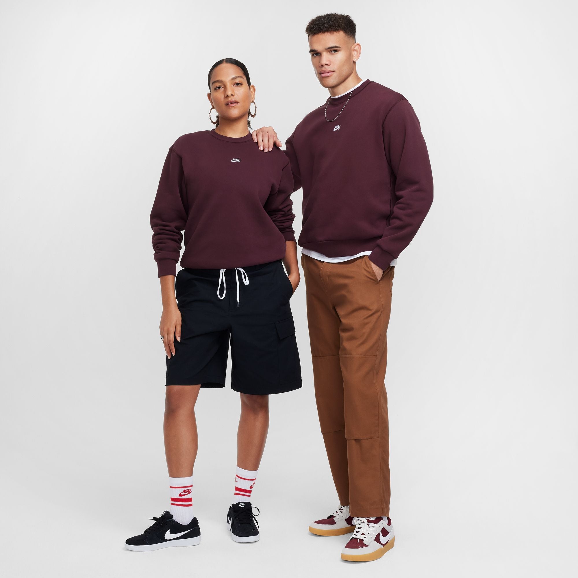 nike essentials crew neck sweatshirt in burgundy