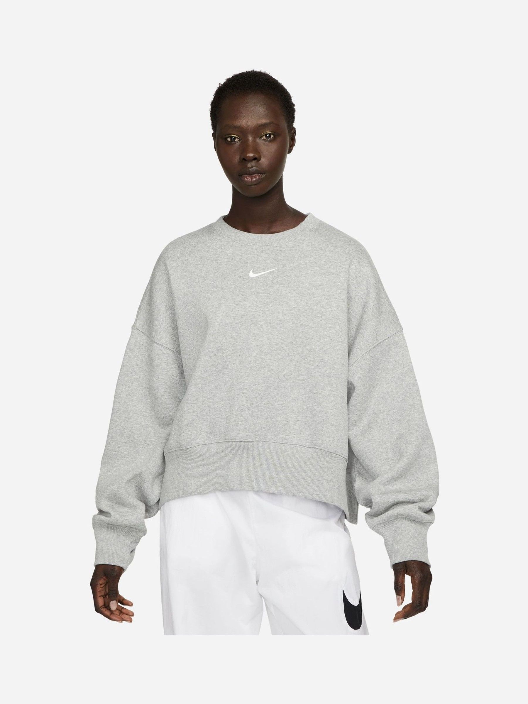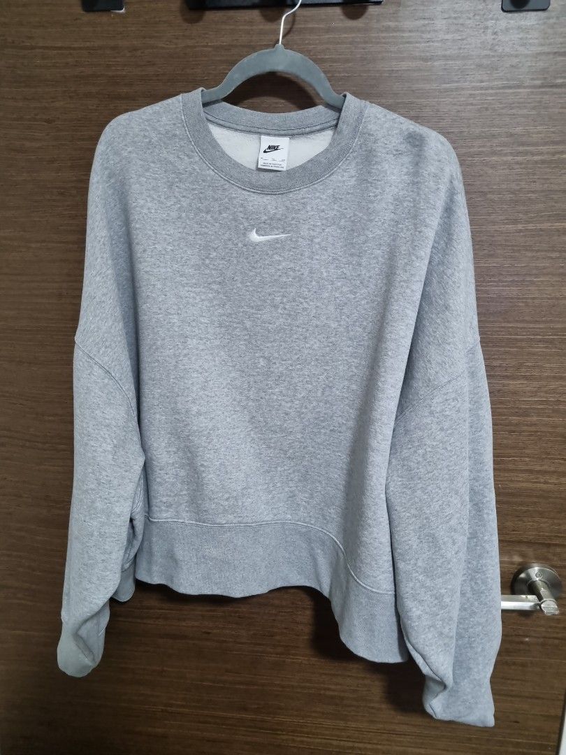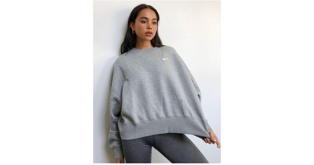 nike mini swoosh oversized boxy grey sweatshirt