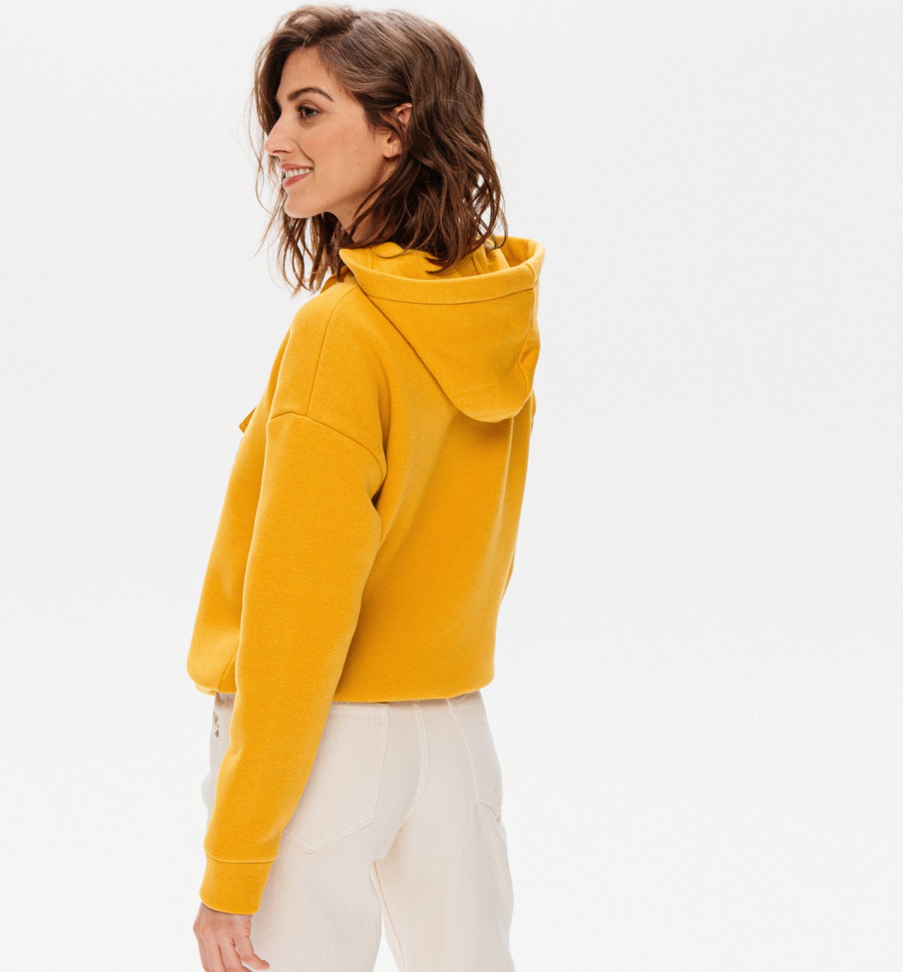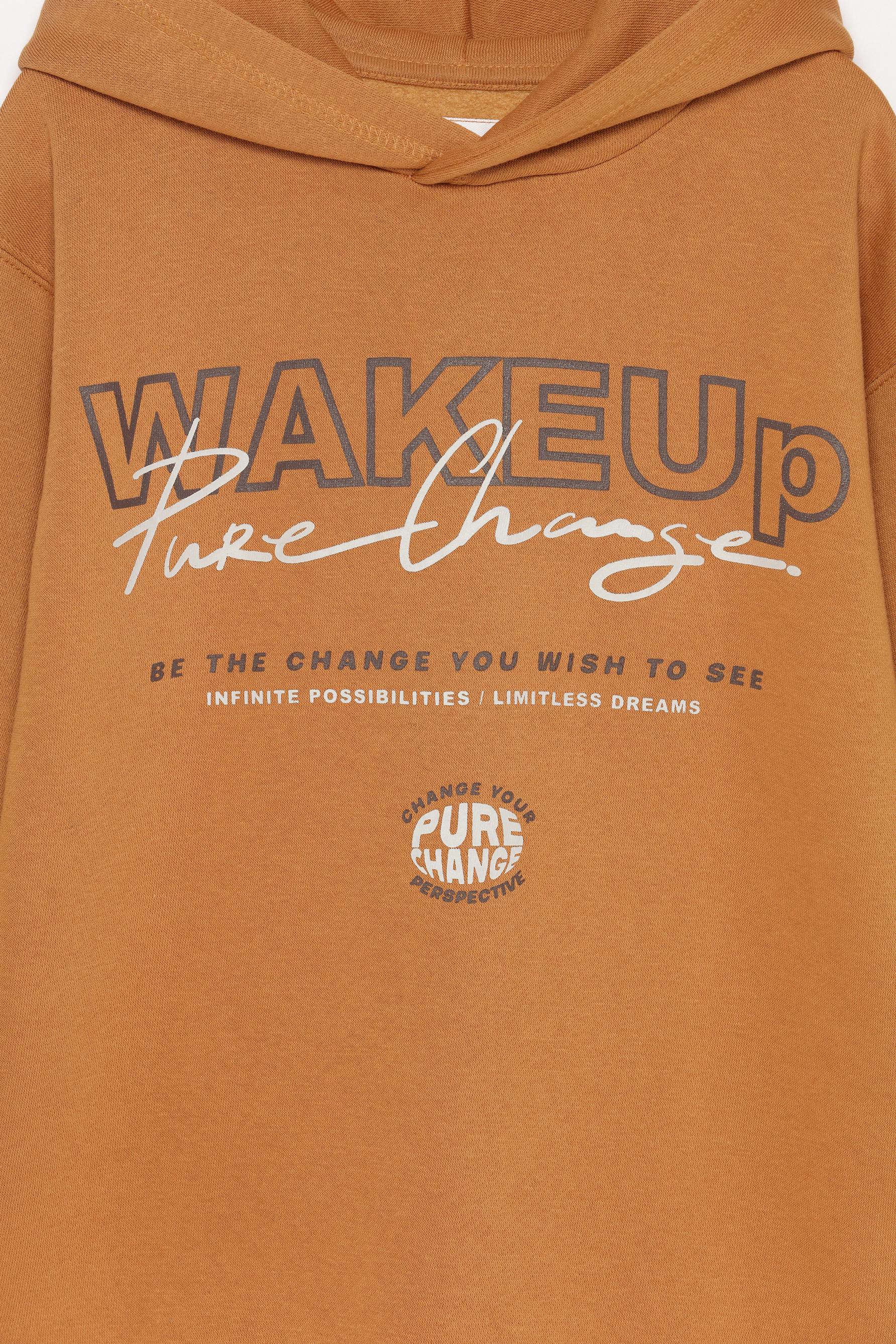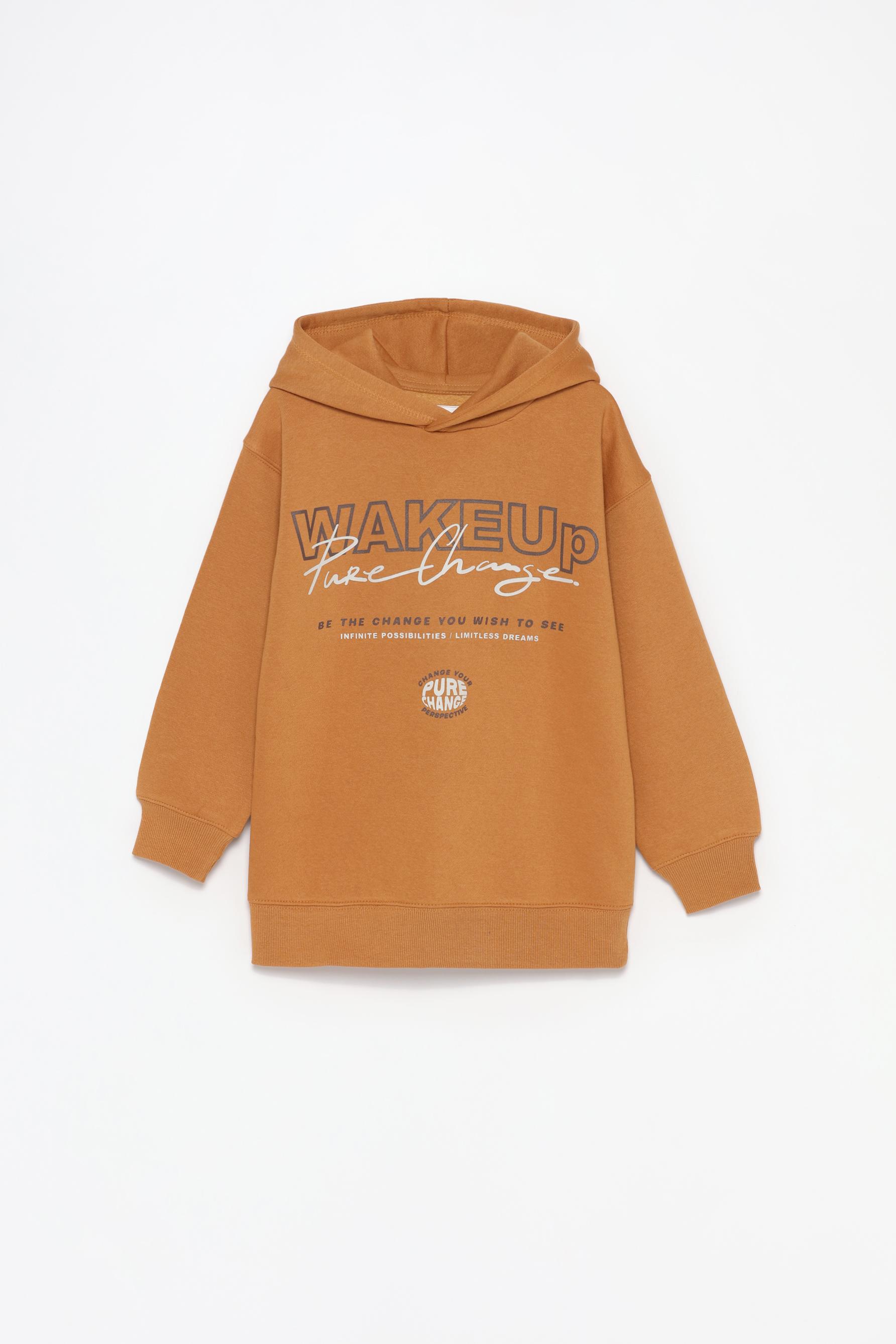ochre sweatshirt with front slogan
