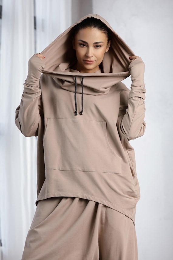 oversized drawstring cowl neck sweatshirt