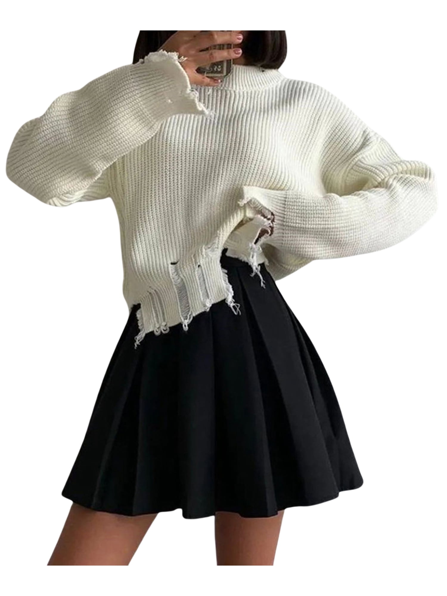 oversized frayed cropped pullover sweater