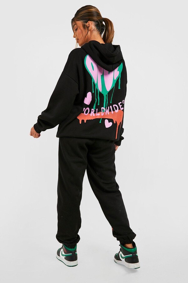 oversized multi graffiti print hoodie