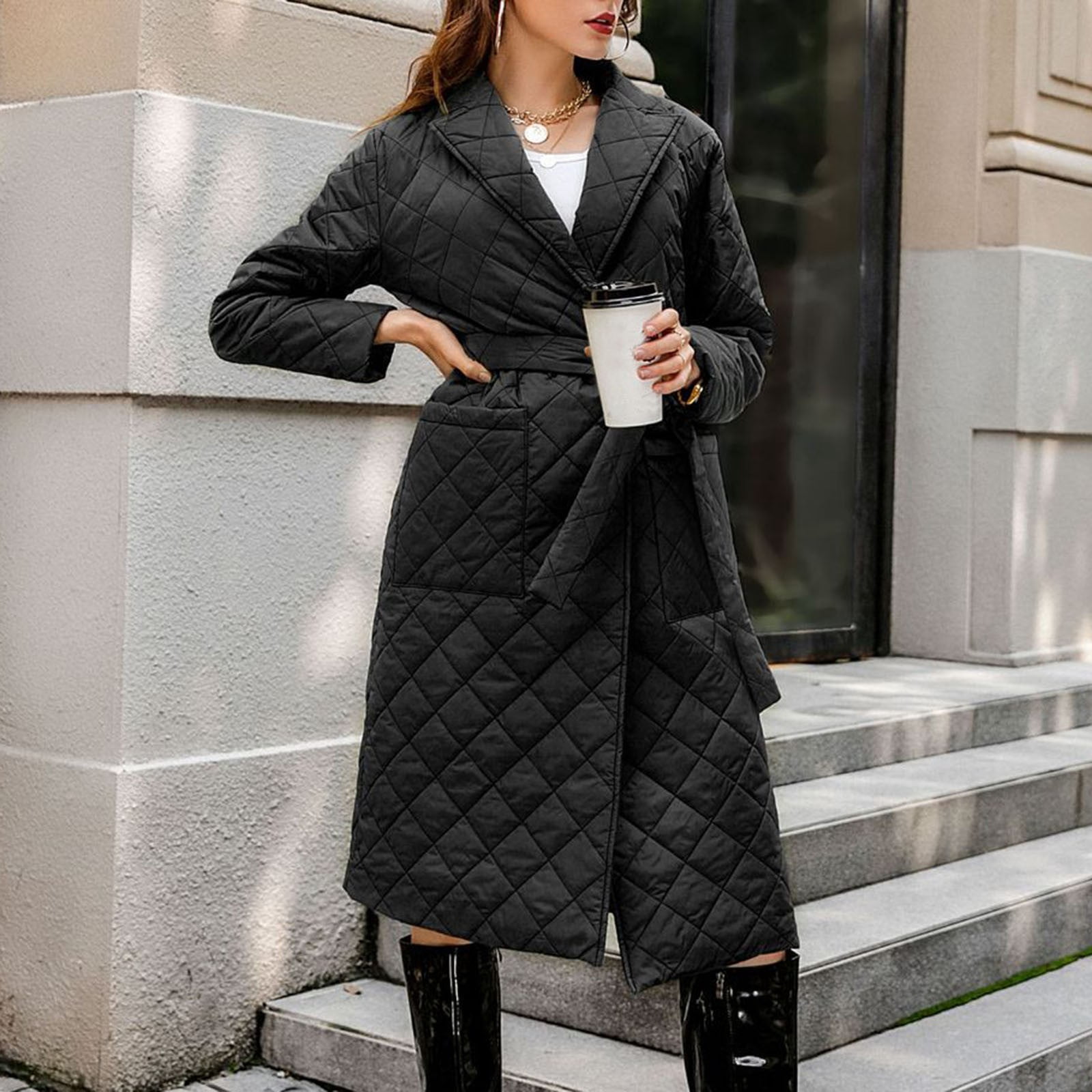 padded long coat womens