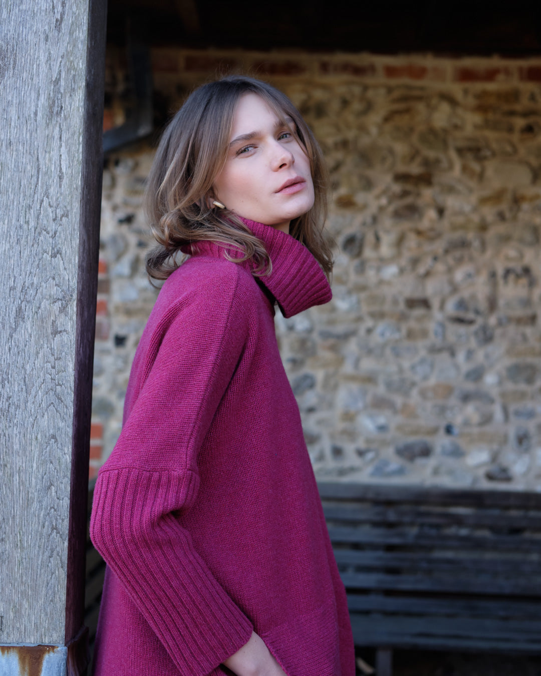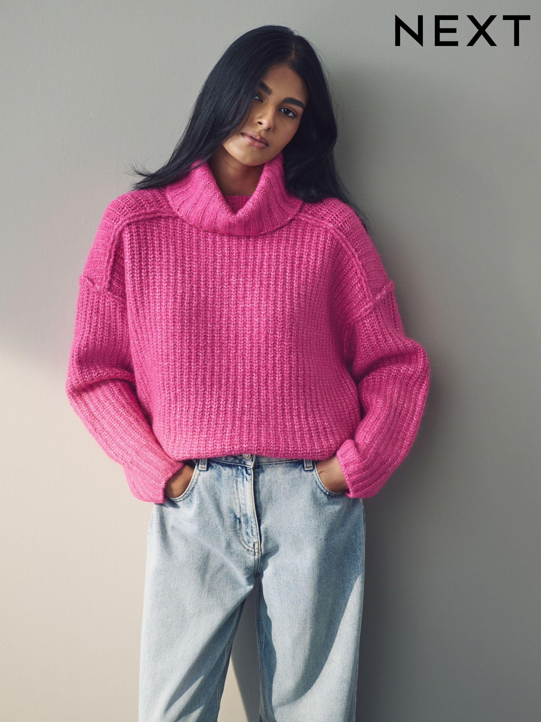 pink oversized roll neck jumper