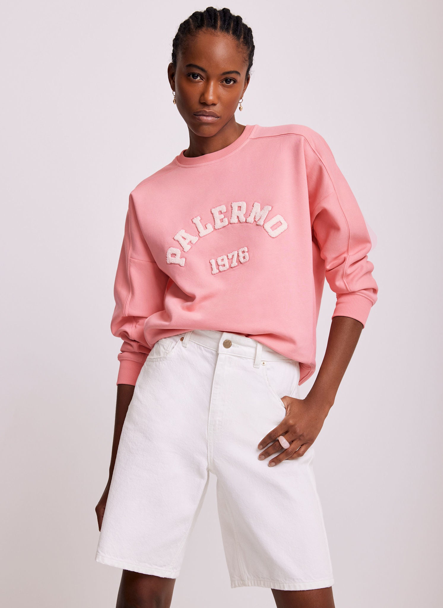 pink white sweatshirt