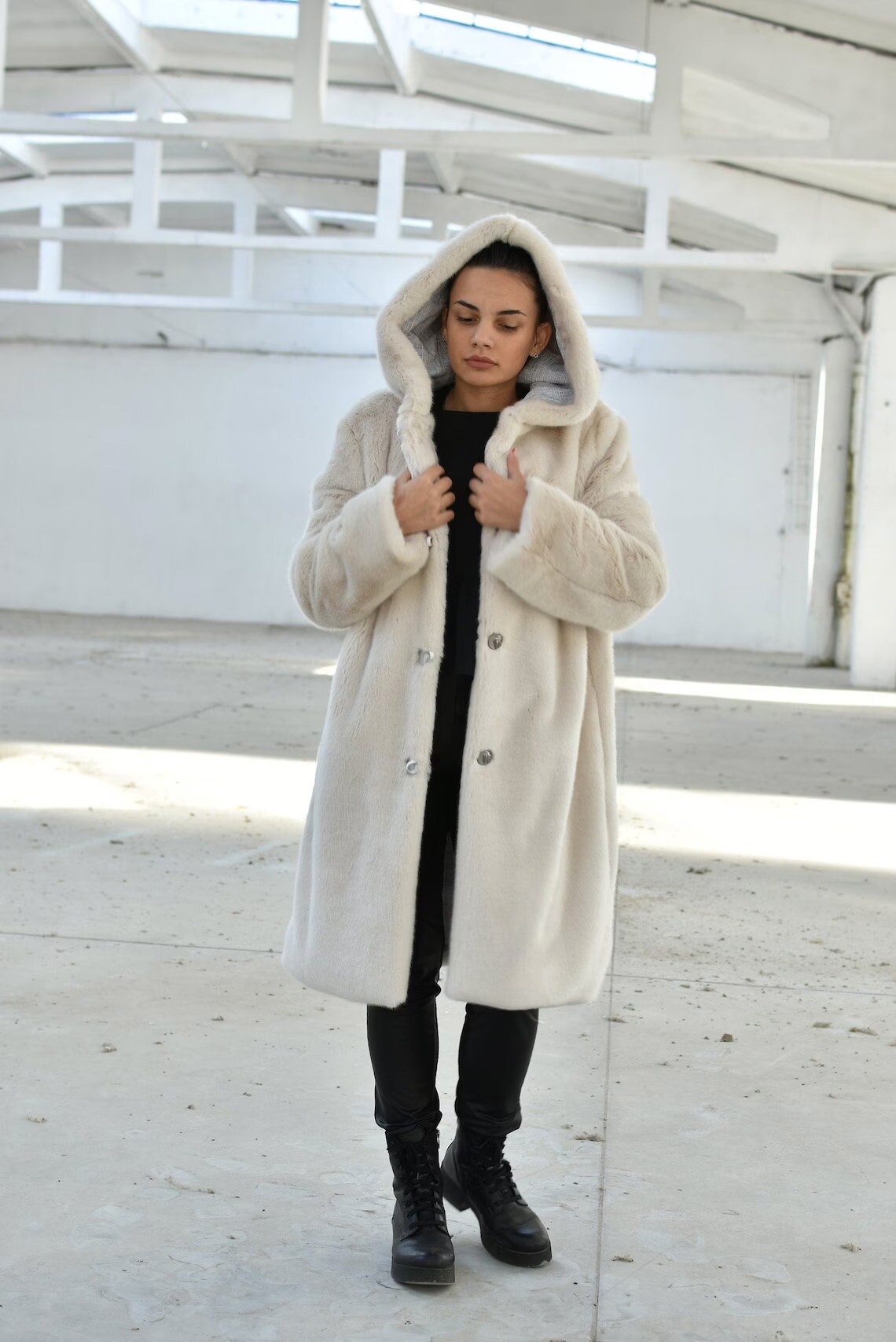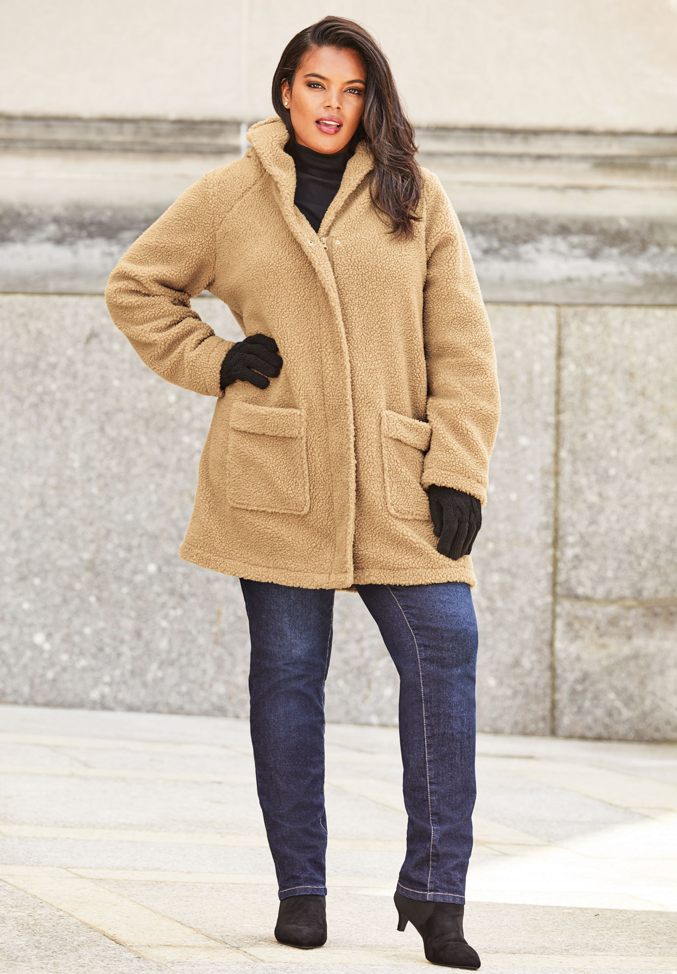 plus size hooded teddy coat