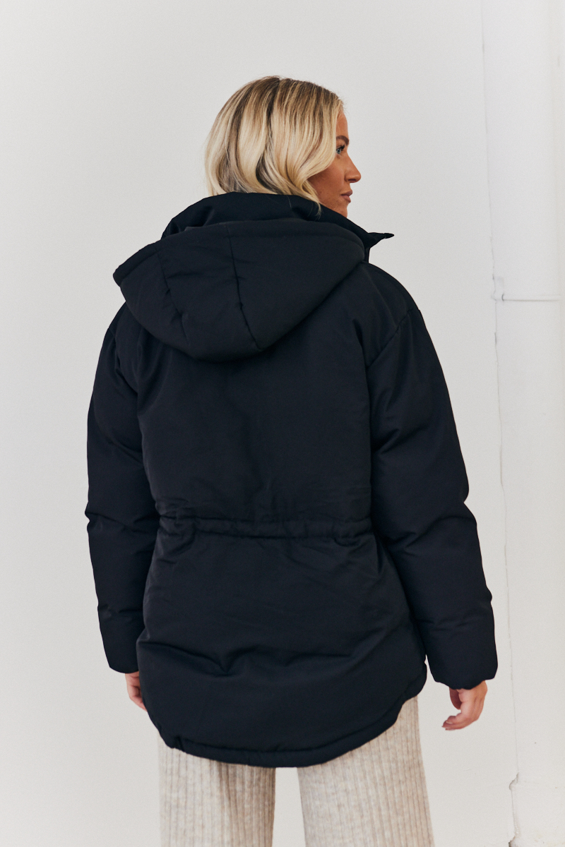 puffer jacket with drawstring