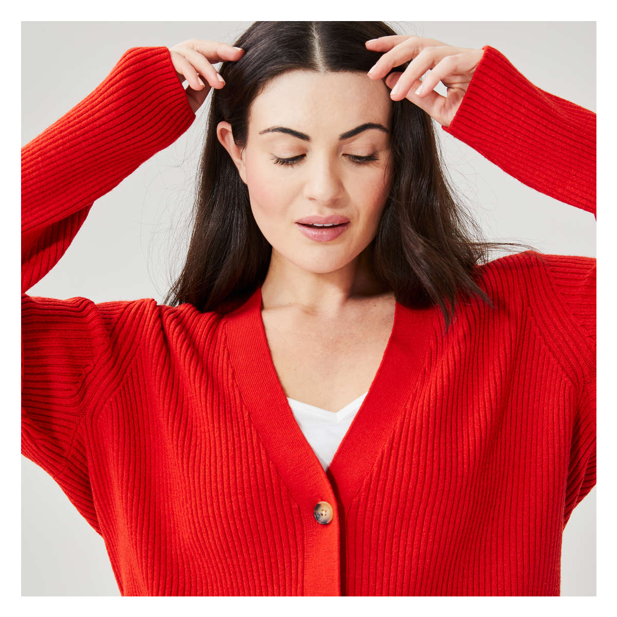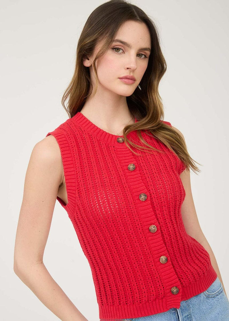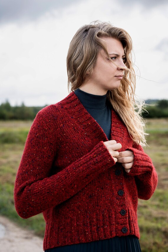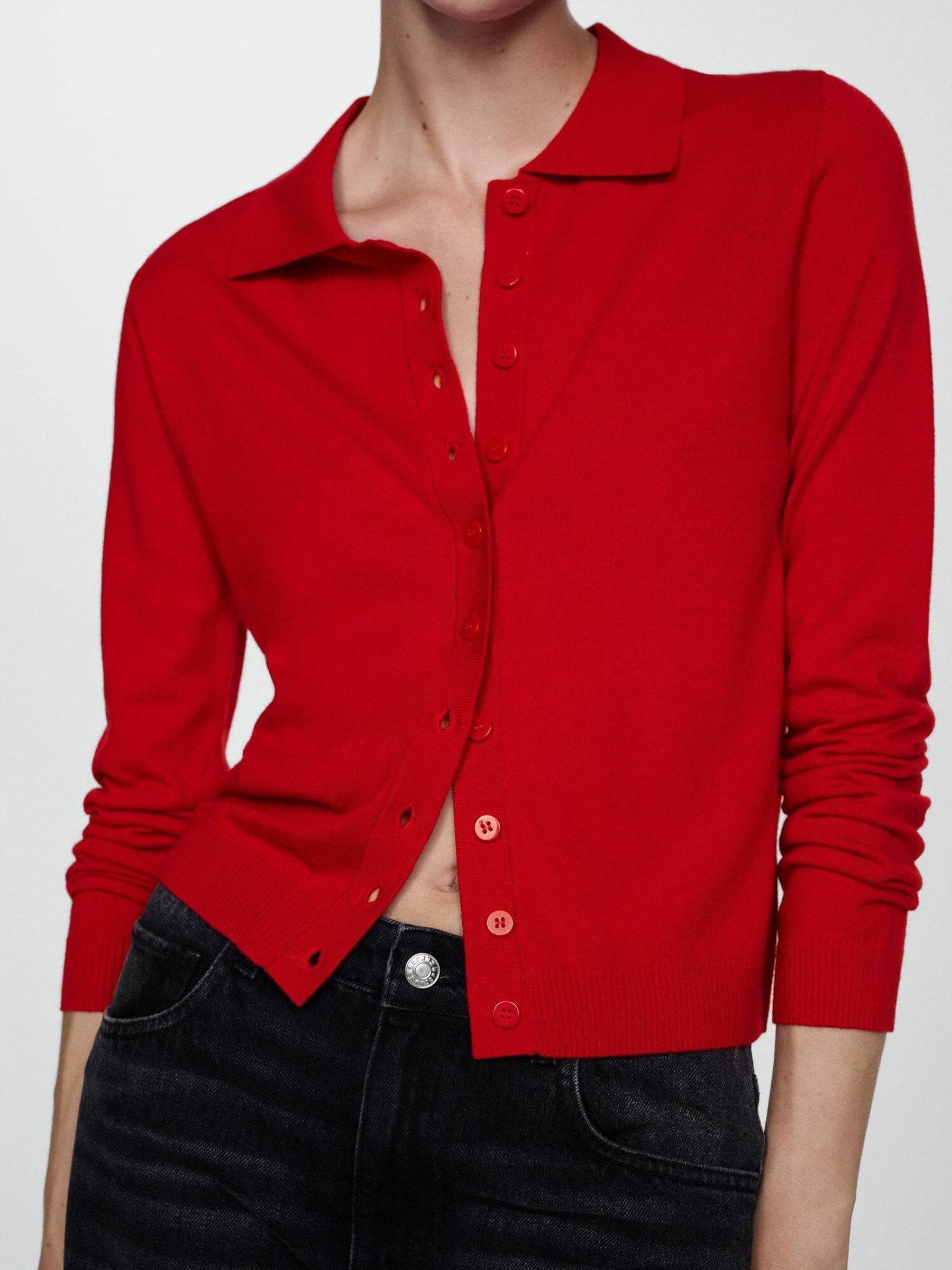 red button down sweater