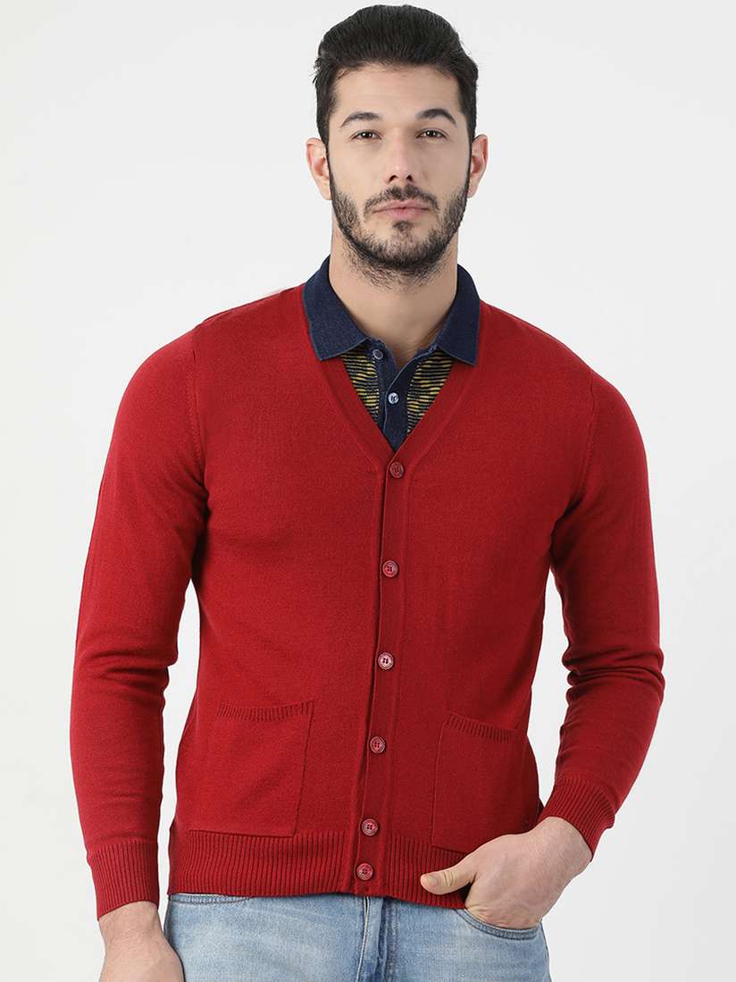 red button up sweater