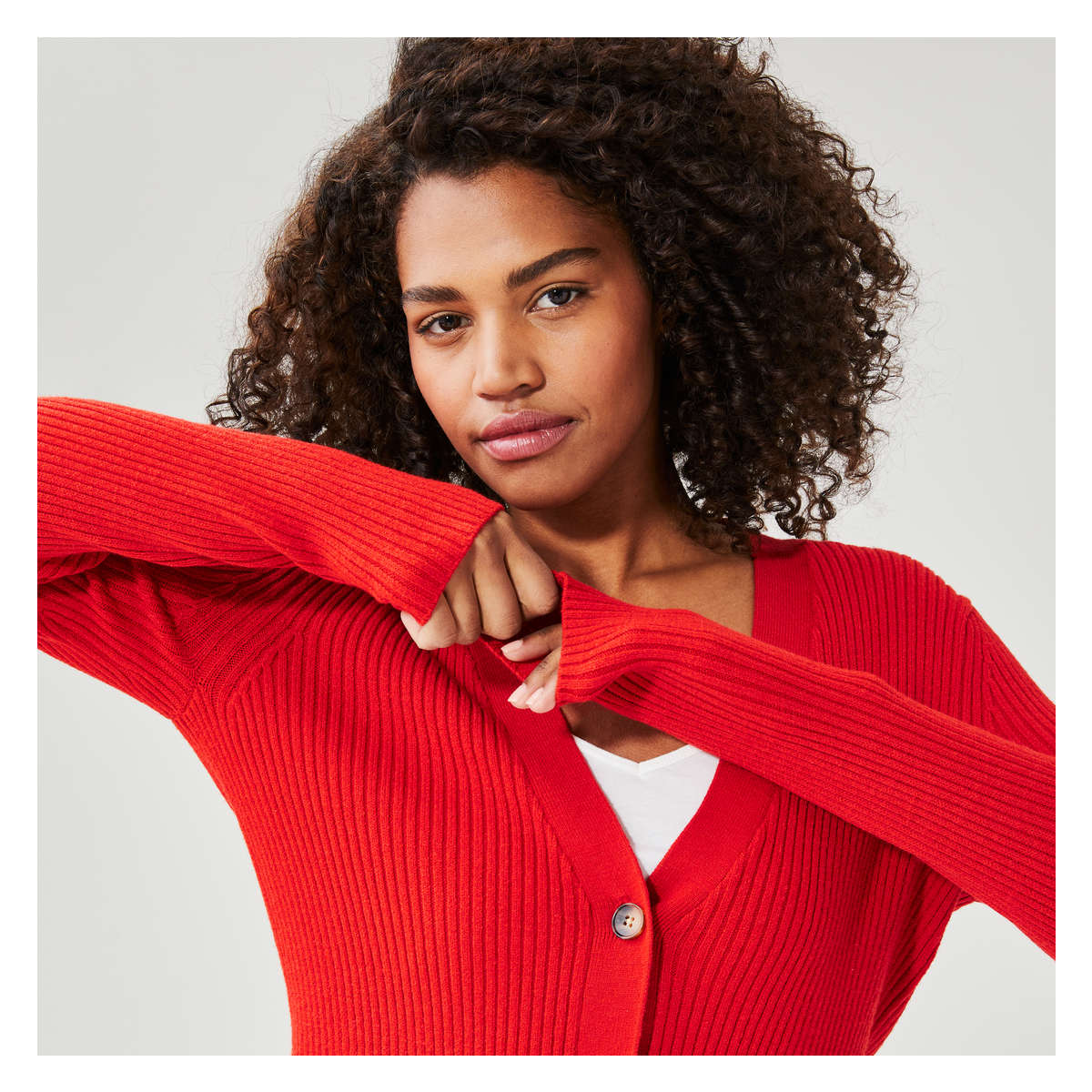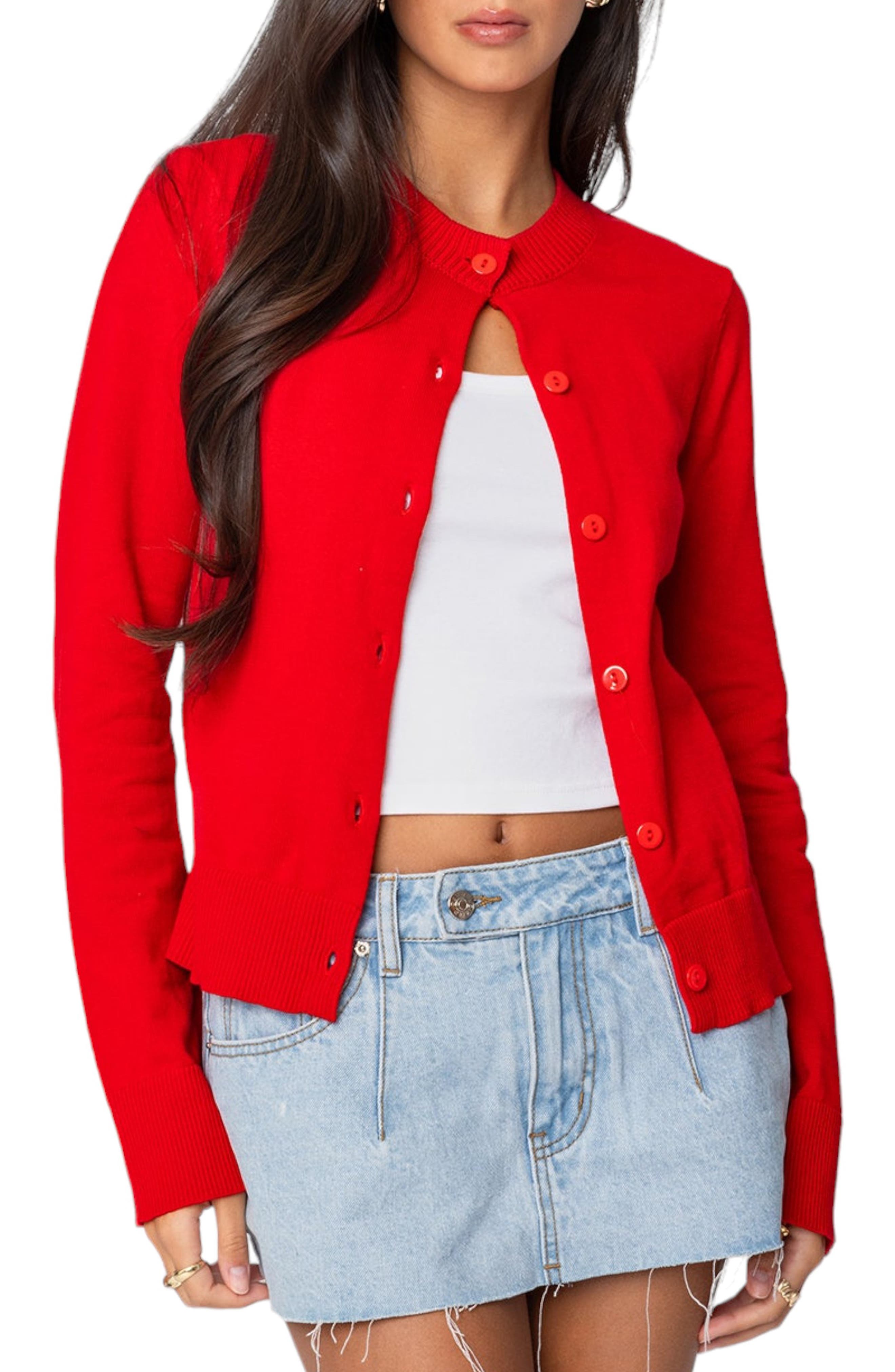 red sweater button up